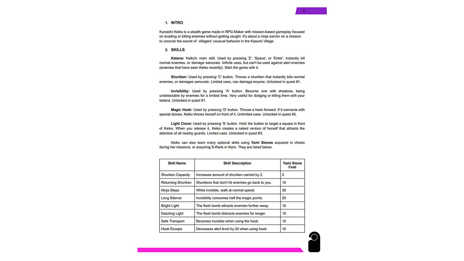 Kunoichi Keiko - Guide is a spoiler document with all the detailed information you need to complete the game and unlock all Steam achievements.