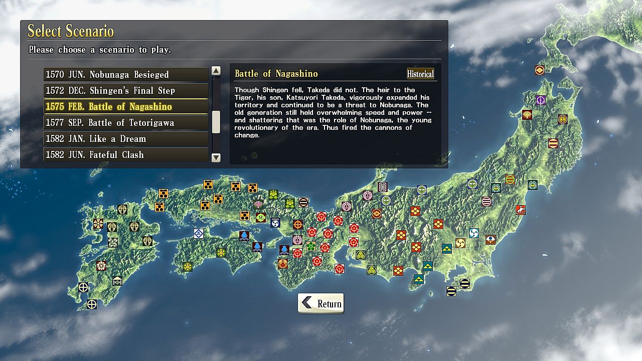 Antes de buscar una clave barata de NOBUNAGA'S AMBITION: SoI - Scenario 5 "Battle of Nagashino", revisa lo esencial. Fecha de lanzamiento en PC: 01 sept 2015. Géneros: Strategy. Categorías: Family Sharing, Single-player, Downloadable Content, Steam Cloud.