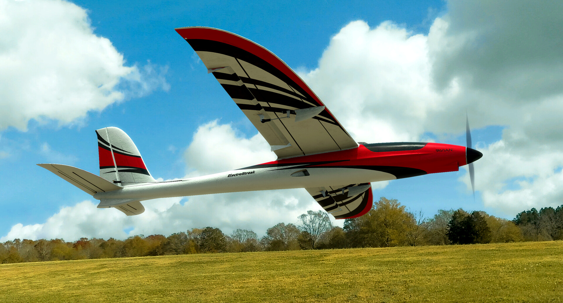 If you have a need for speed the ElectroStreak 1.1m is one of the fastest prop-driven E-flite airplanes ever! With 3S 1800–2200mAh batteries and the factory-installed brushless power system, the ElectroStreak reaches up to 100 MPH — making it a great choice for intermediate pilots with some high-speed flying experience, especially when utilizing AS3X+ and SAFE Select with automatic Hand Launch Assist Mode technologies. And more experienced pilots can unleash top speeds of up to 120-130 MPH with popular 4S 1800–2200mAh batteries!