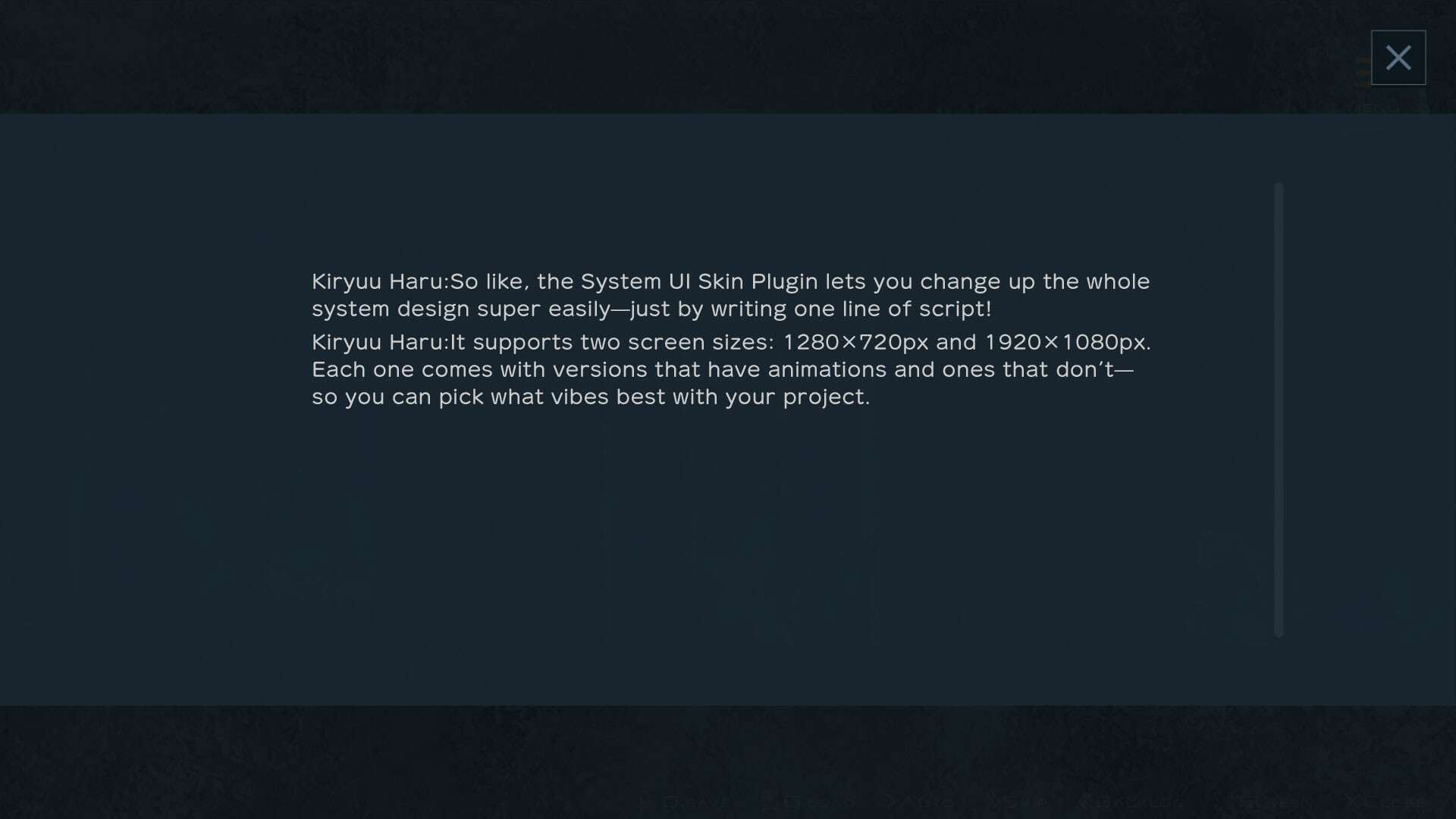 For detailed instructions on integrating this into your project, please refer to the file named "How_to_Install_System_UI_Skin_Plugin.txt" included in the downloaded folder.