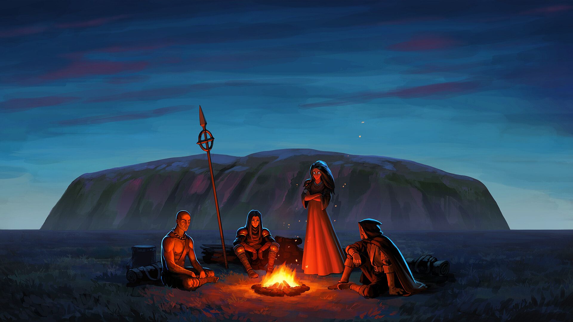 • A new menu screen image, showing all four of the playable classes by the campfire, with the iconic Uluru in the background.