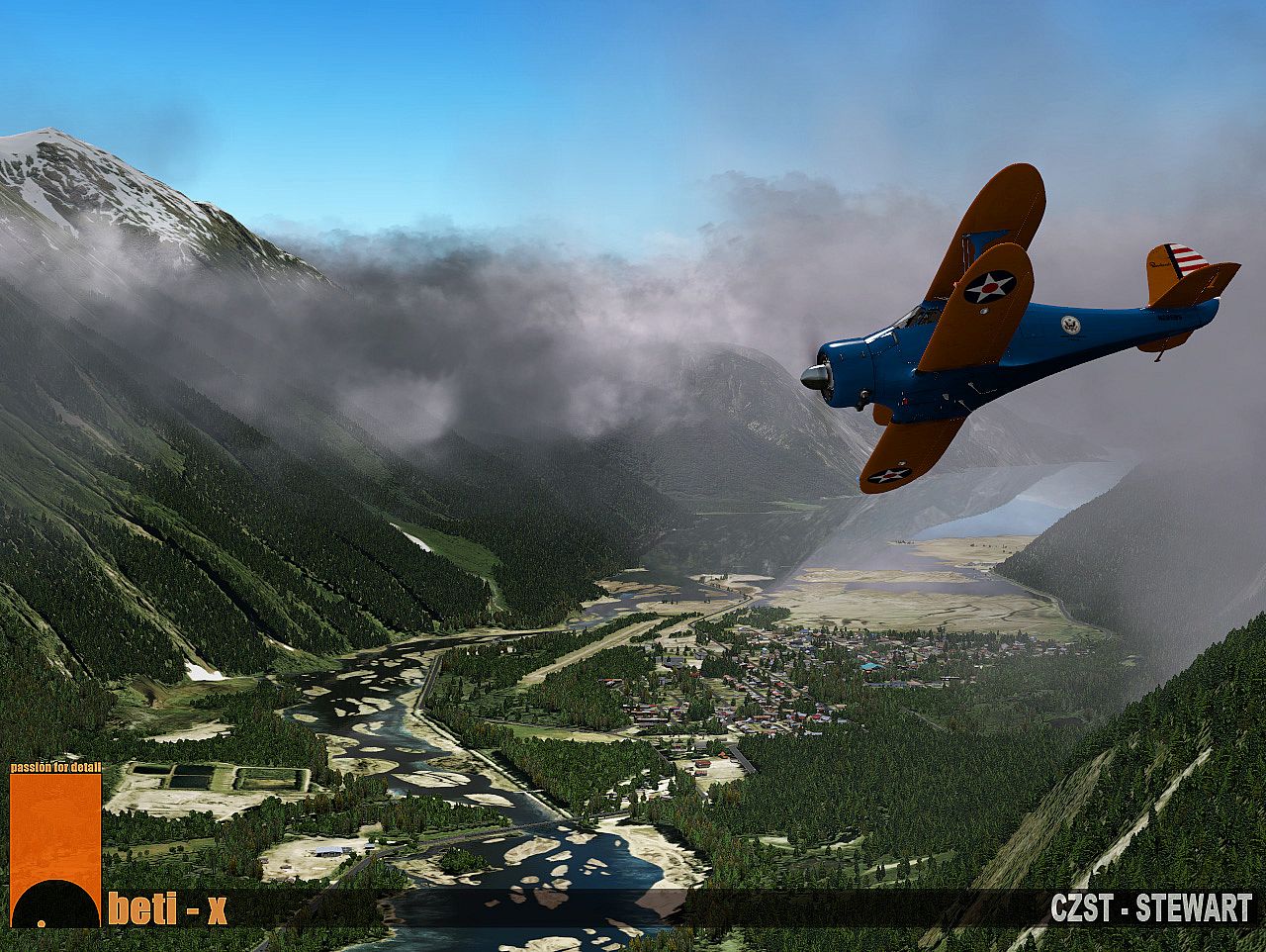 Stewart Airport in British Columbia sits amid towering mountains and frequent bad weather, turning every approach and departure into a demanding test for pilots. This X-Plane 10 simulation add-on recreates the site with high-resolution textures on HD buildings, handcrafted ground imagery at 2cm per pixel, and photoscenery spanning over 150 square kilometers at 50cm resolution. Volumetric grass, hand-placed 3D trees, dense forests, and a precisely modeled town of Stewart fill the landscape, complete with custom objects like a museum, schools, fire station, port, fuel station, and hospital. Pilots fly planes or helicopters through hand-edited terrain mesh, corrected elevations, and perfected roads in this detailed flight simulation. Complex surroundings demand careful navigation year-round. Expert sim enthusiasts who crave authentic, high-fidelity airport challenges will find it essential.