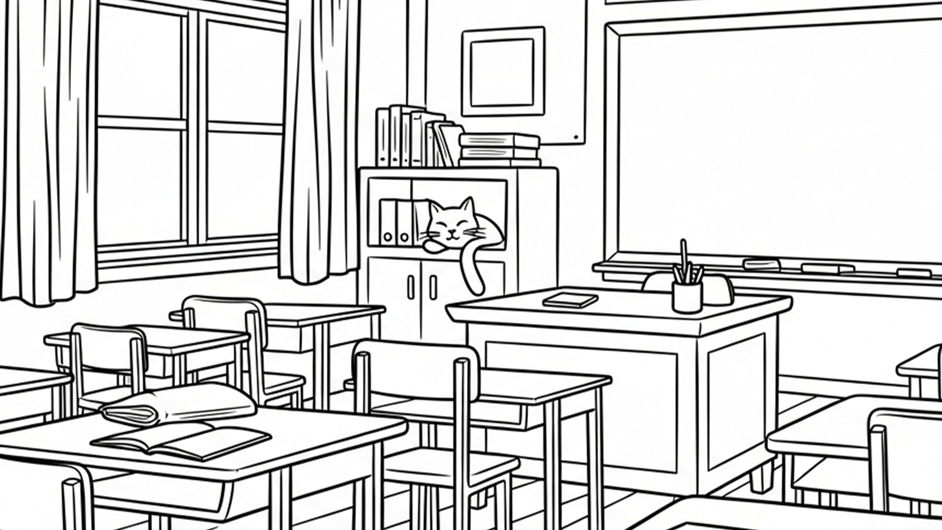 Relax and express your creativity by coloring black-and-white scenes with guided step-by-step palettes or your own freeform pastel colors. The special “Meow FM” radio offers soothing lo-fi and chillhop music to accompany your journey through time.