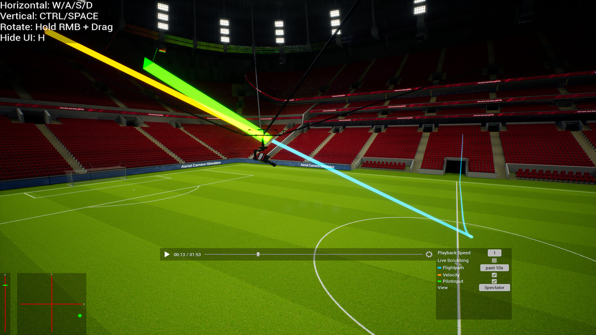 • Free Flight: Unrestricted exploration of the stadium environment. Experiment with different flight paths and camera focus points without any specific objectives.