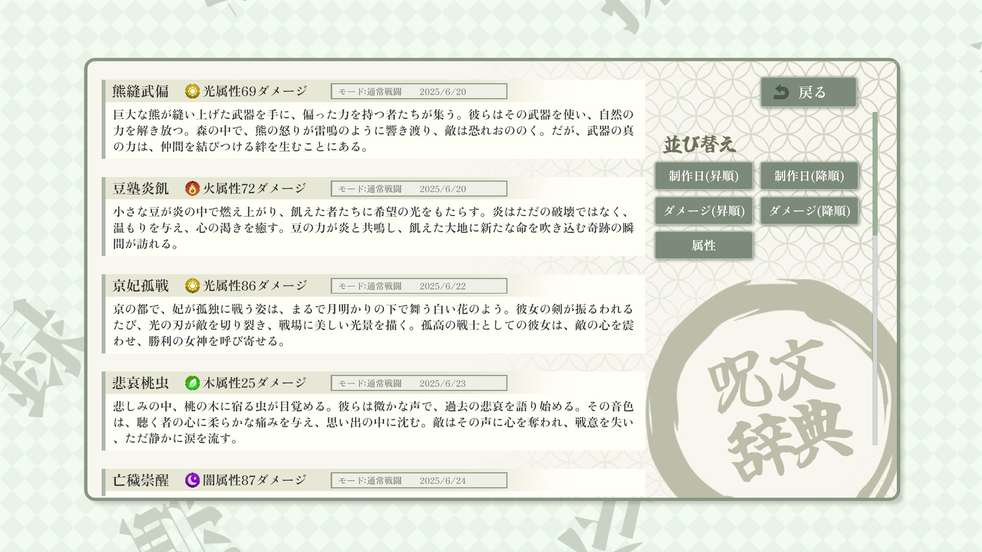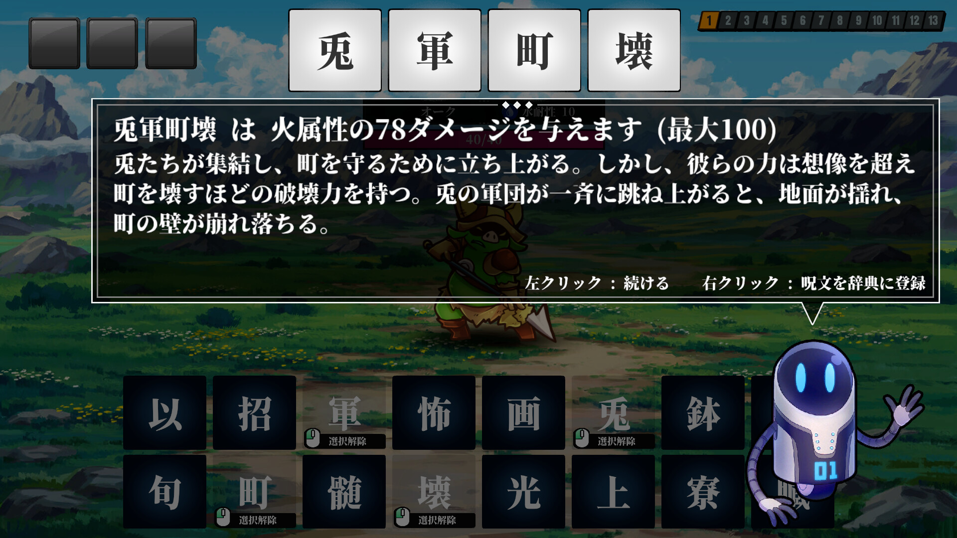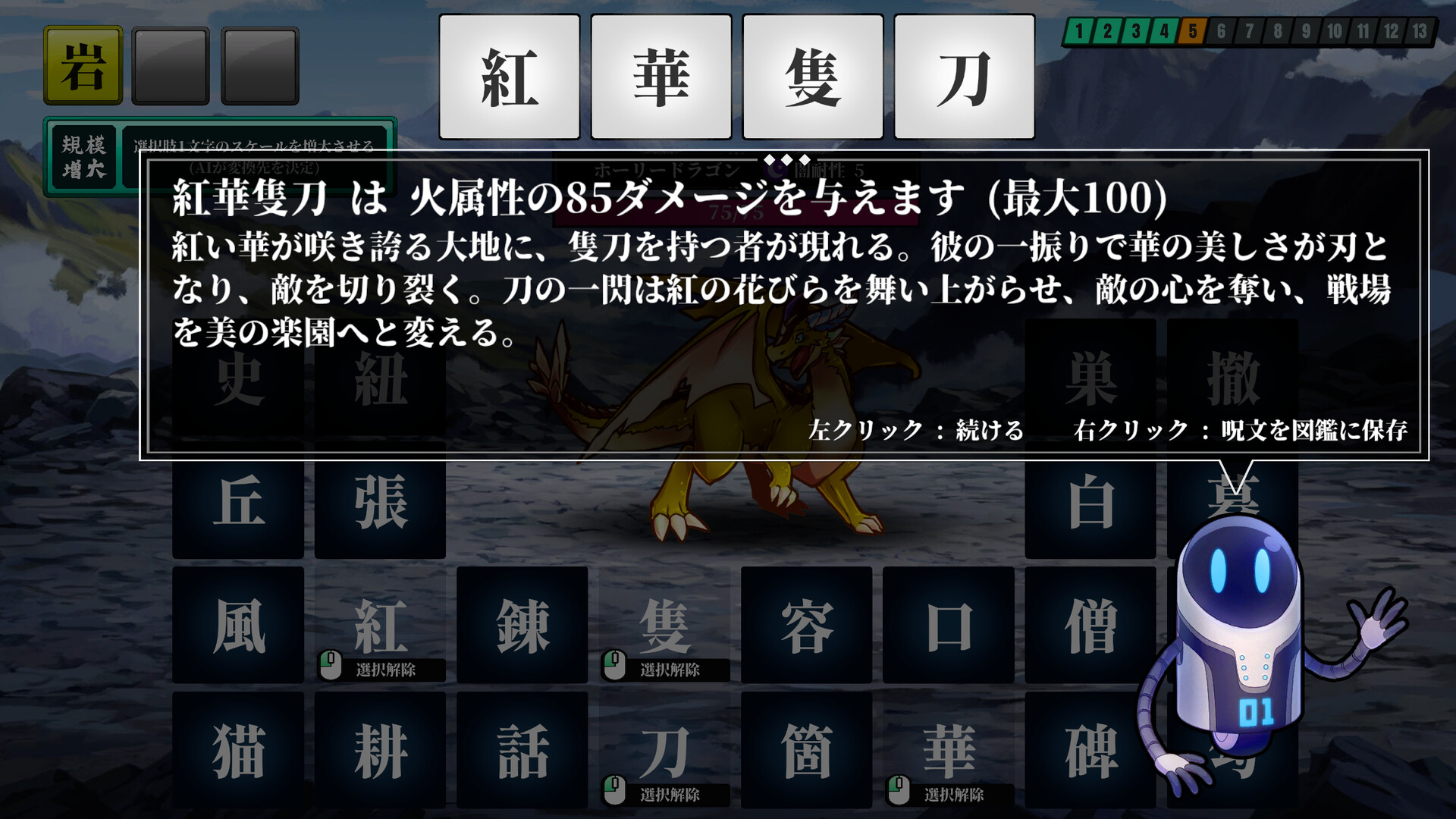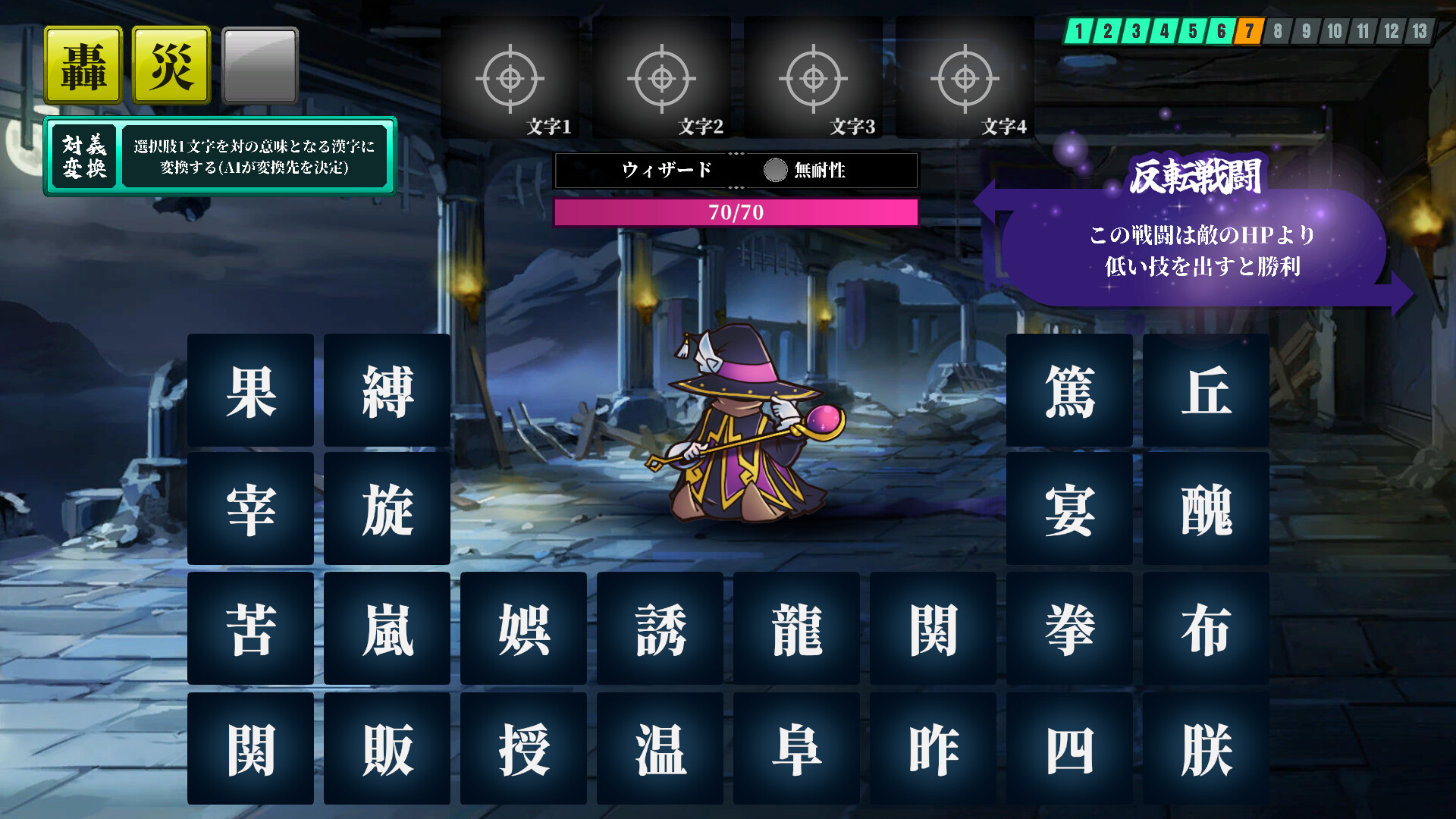 This game challenges you to create original four-kanji spells using randomly distributed kanji characters.