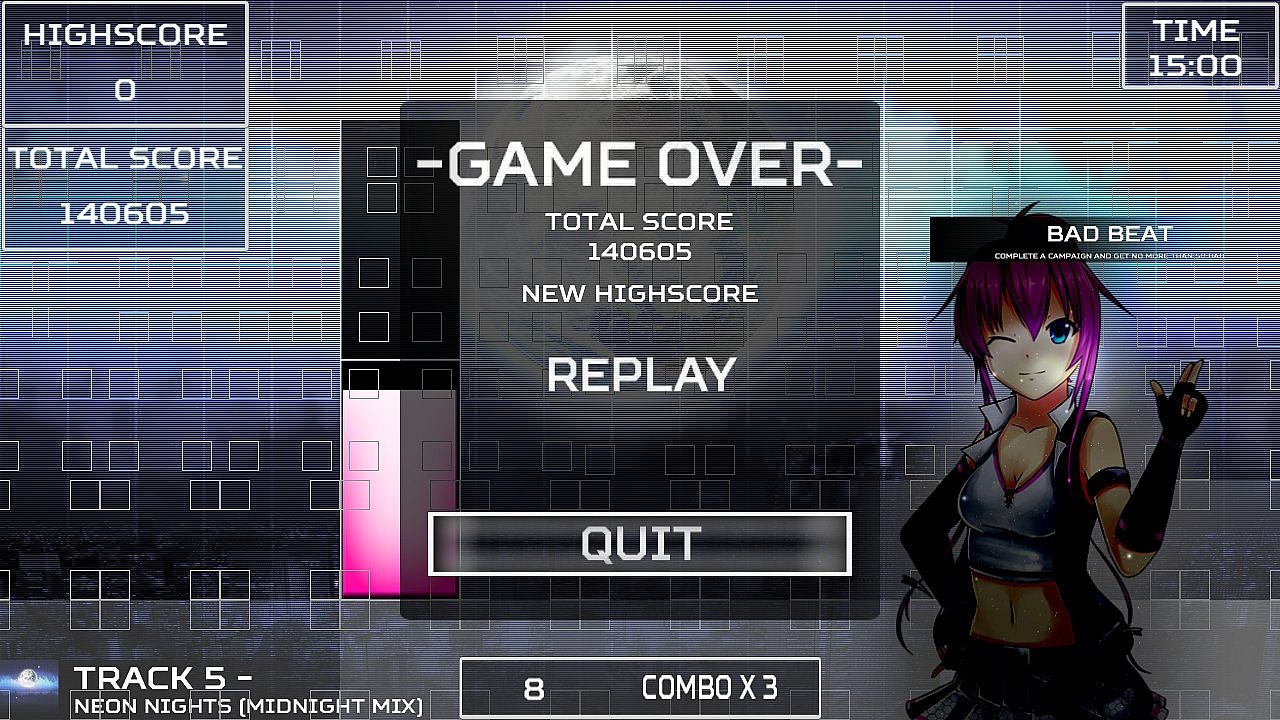 Take a trip through engaging music and intense puzzle action, set in Tokyos Electric Town! Stack blocks to build combos, tap in rhythm with the music to break them. Play trough the campaigns, go for the high score!