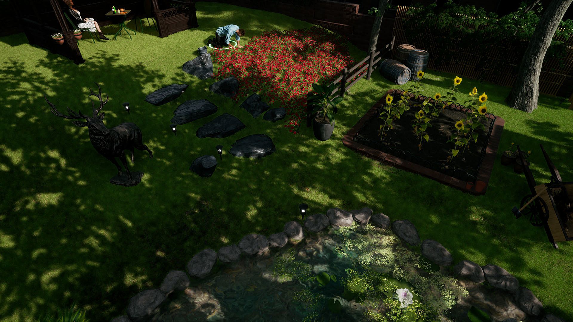La gestión económica está ligada al progreso, con trabajos que generan ingresos para mejoras. La simulación prescinde de objetivos estrictos y premia la creatividad y las decisiones mediante narrativas emergentes.
