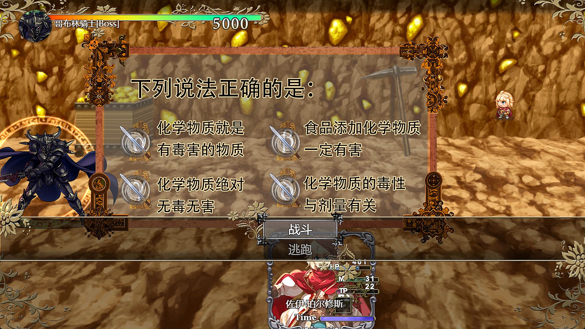 This is a fantasy RPG game themed around chemistry and alchemy. You trigger effective attacks by choosing the correct answers to chemistry questions (incorrect options have no effect). Explore mazes, collect materials, and craft quest items using strict chemical equations. Upgrade your equipment and skills, and finally complete the protagonist's legendary story.