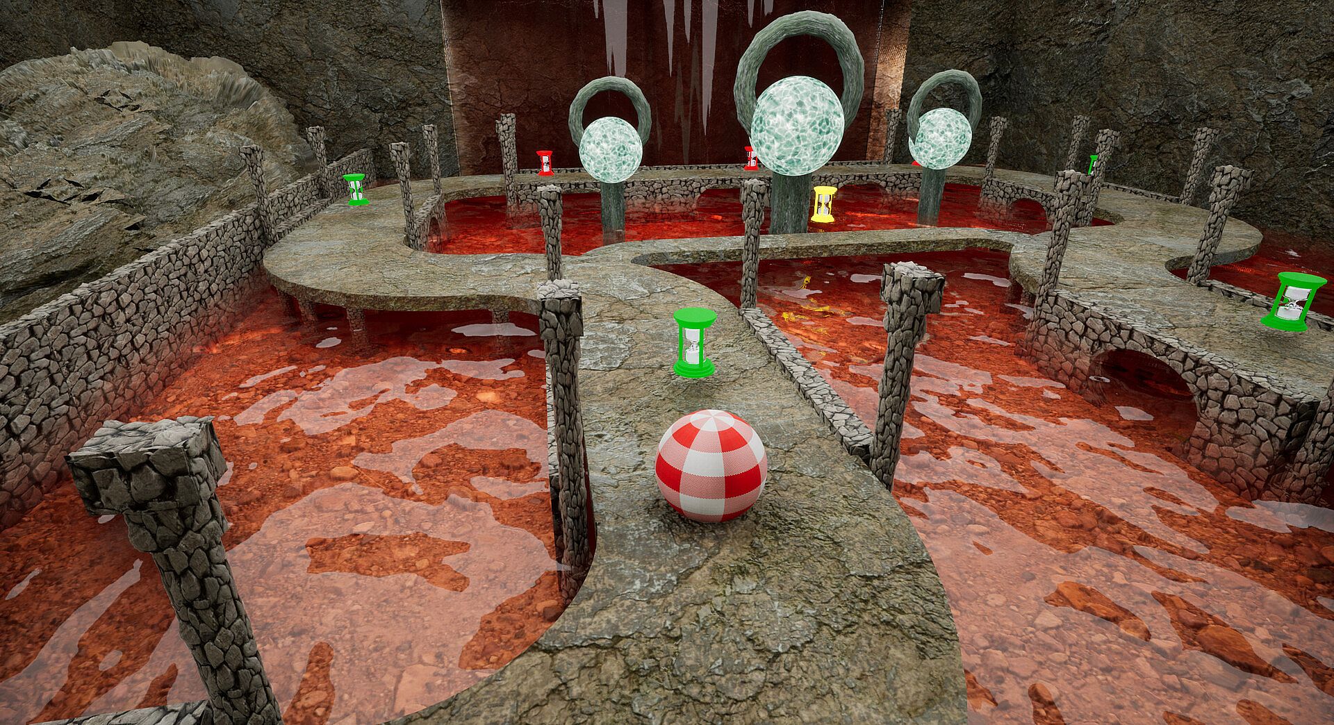 Checkpoints, Tubes, Elevators, Moving Platforms, Spikes, Wall-Pushers, Spinners, Fan Blades and Laser Fan Blades,  Rails, Ball Minimizer, Cannons, Arrow Shooters, Pitfalls, Glowball, Death Hourglasses/Balls, Speedpads, and MANY MORE.