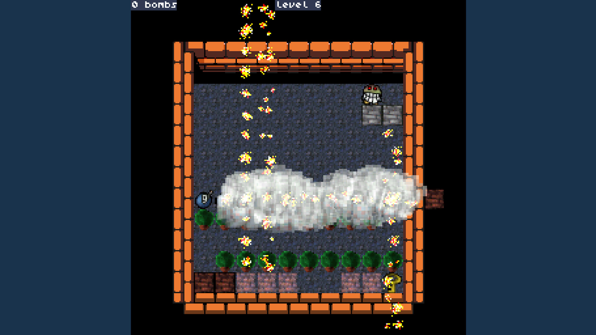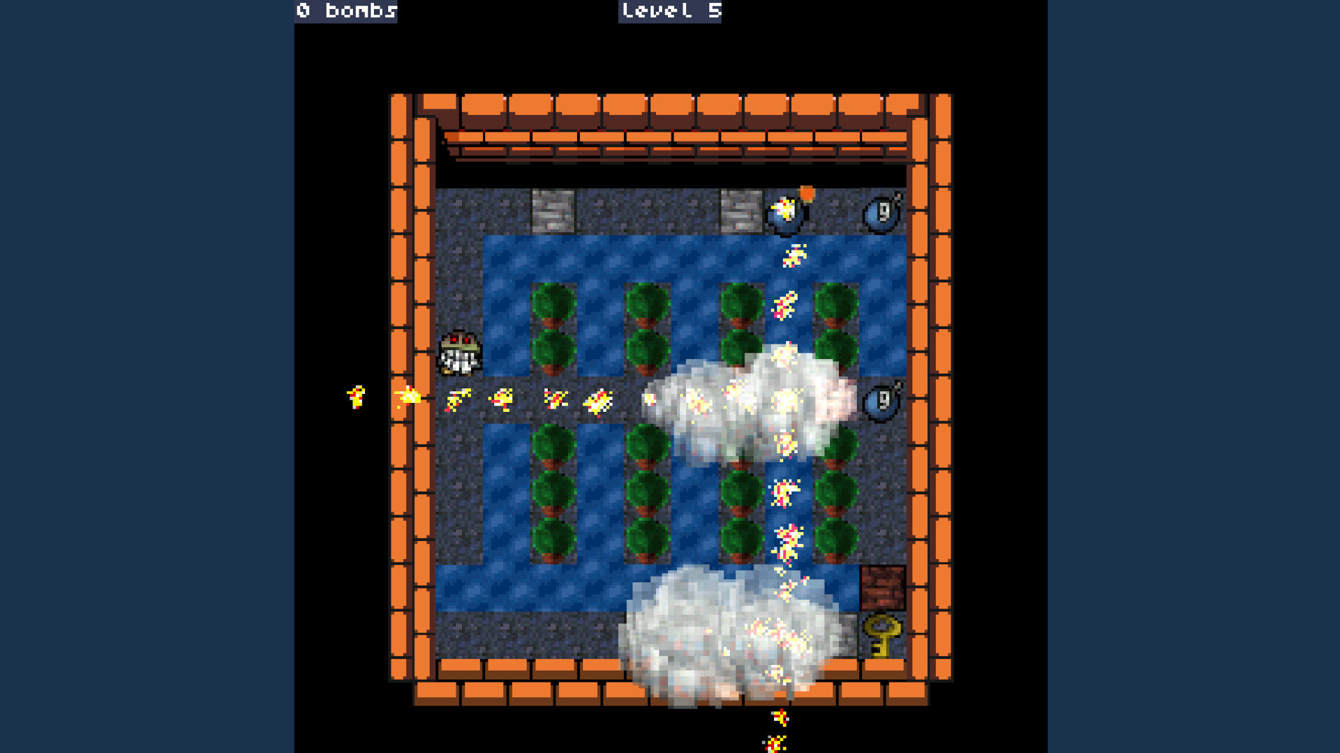 - This is the key. If it's grey then there's still money you need to get. But if it's gold then you can touch it to end the level.- This is a bomb.Some bombs will be already placed in the level, and some bombs can be collected by picking up money. All bombs can be pushed. If you collect a bomb from money then you can drop it with the configured-Y button. If you drop a bomb then it is lit and will detonate in a few short seconds. A bomb will have a number on it. The number says how many tiles in each cardinal direction that the bomb will blast. If you are standing on one of these blast squares then you'll die. If another bomb is on a blast square then it will get lit.