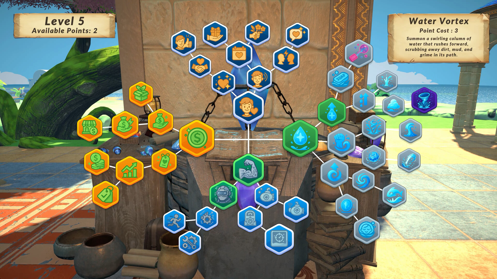 Unlock powerful elemental abilities to enhance your island experience. Each new skill provides exciting opportunities to upgrade your carwash, beautify your surroundings, and uncover hidden secrets around the island.