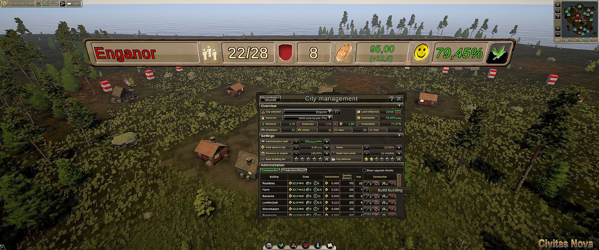 Expand your settlement with the help of various buildings, create living space, increase the sphere of influence of the settlement and keep your residents happy so that their production does not decrease and they pay their taxes.