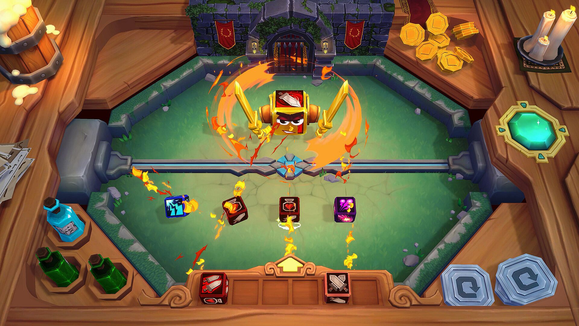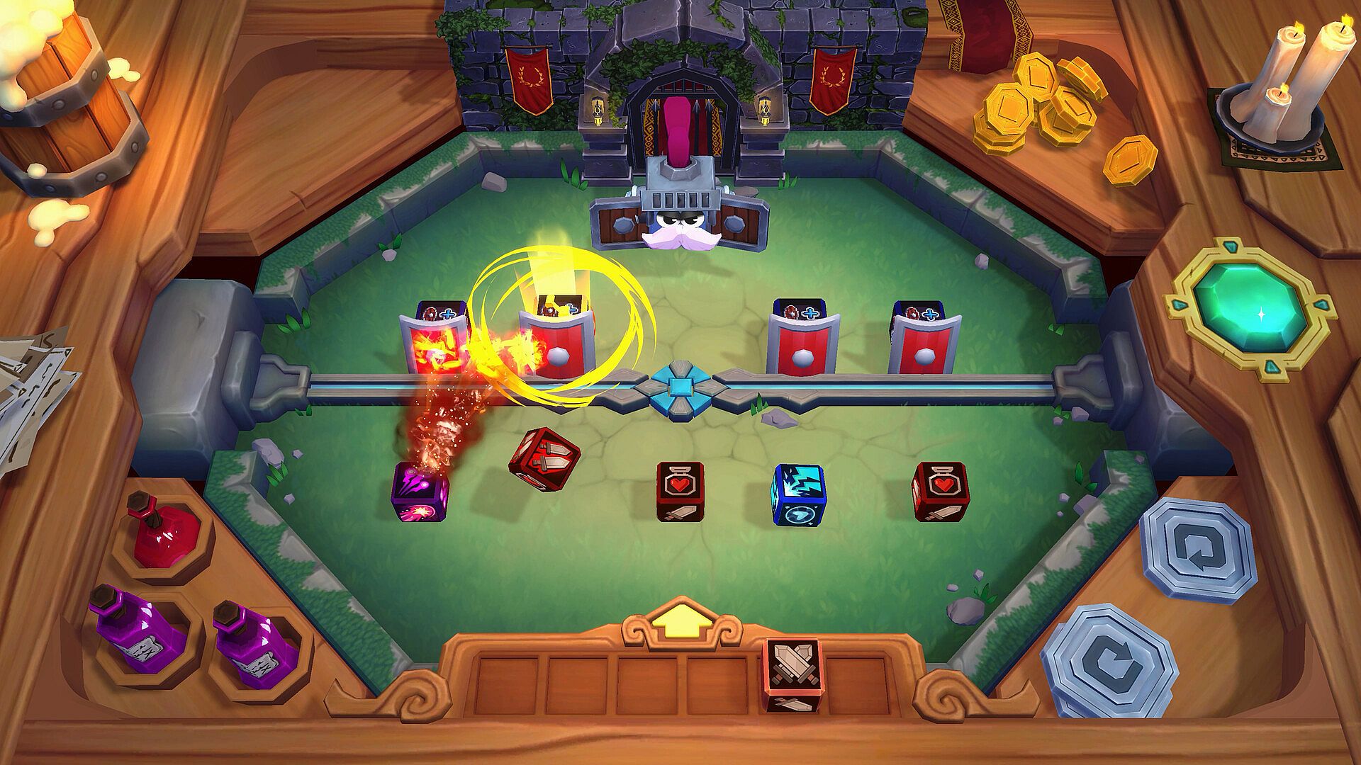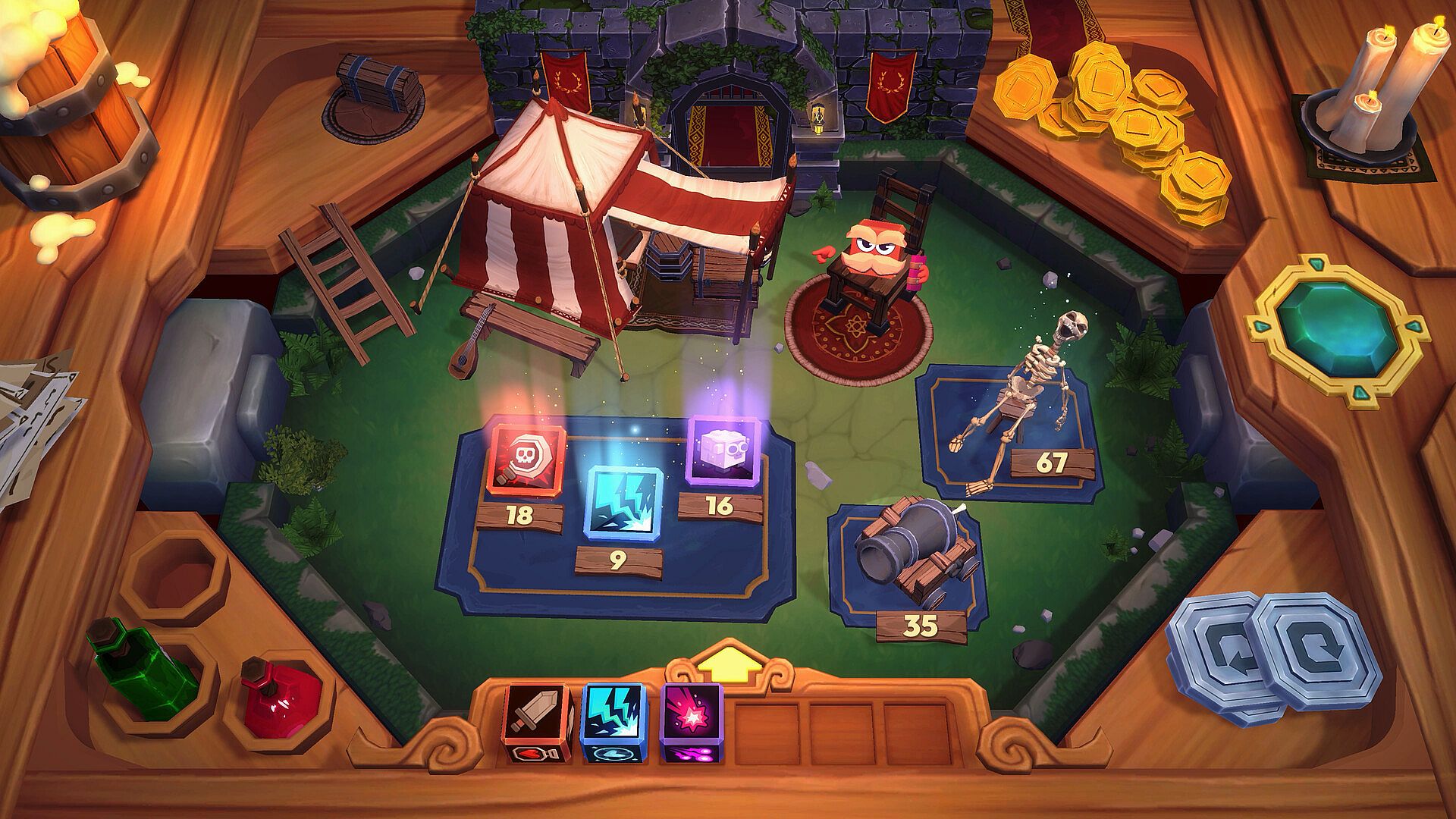 Potions & Table Artifacts – Hurl potions mid-fight, trigger catapults, beer kegs, and mimics placed right on the table. 3 potion slots, 12+ interactive artifacts to discover.