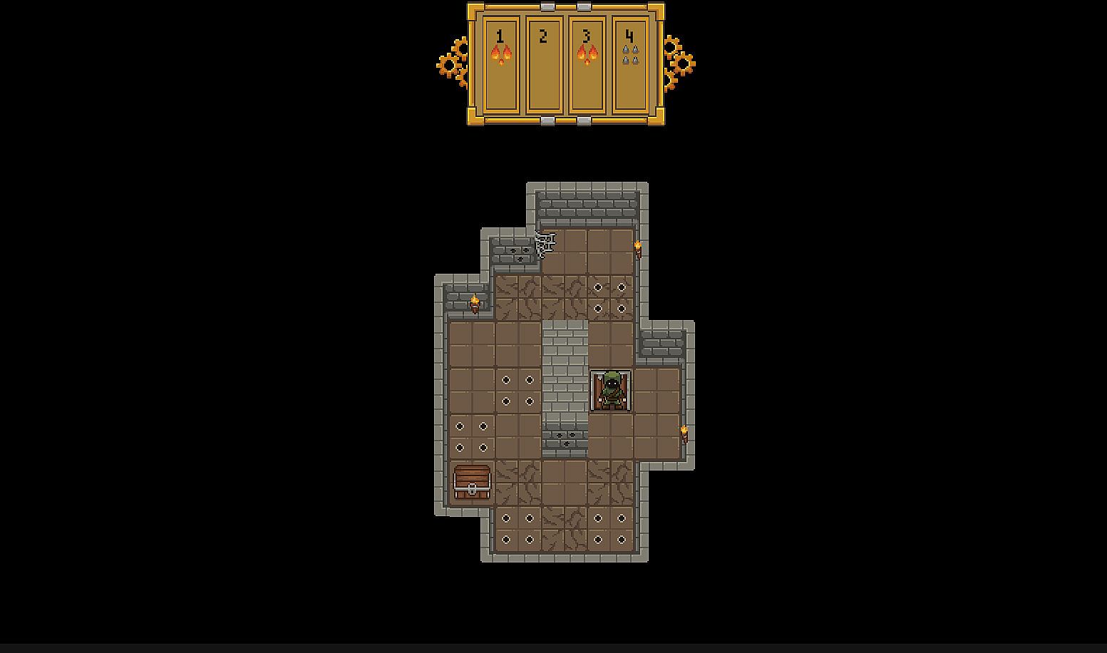 Treasure hunts challenge players in a self-defending dungeon filled with clockwork traps like deadly spikes, flaming walls, and breaking floors. Trap sequences trigger in a fixed order, revealed ahead of time, so you plot your route to grab the gold and return to the exit without getting caught. Each move demands careful planning to outsmart the mechanisms.