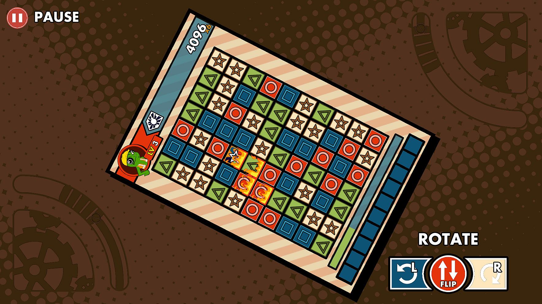 3 Standard difficulties + 2 Unlockable difficulties; each with Zen Mode, Gravity Rush, and Time Panic variations for endless gameplay