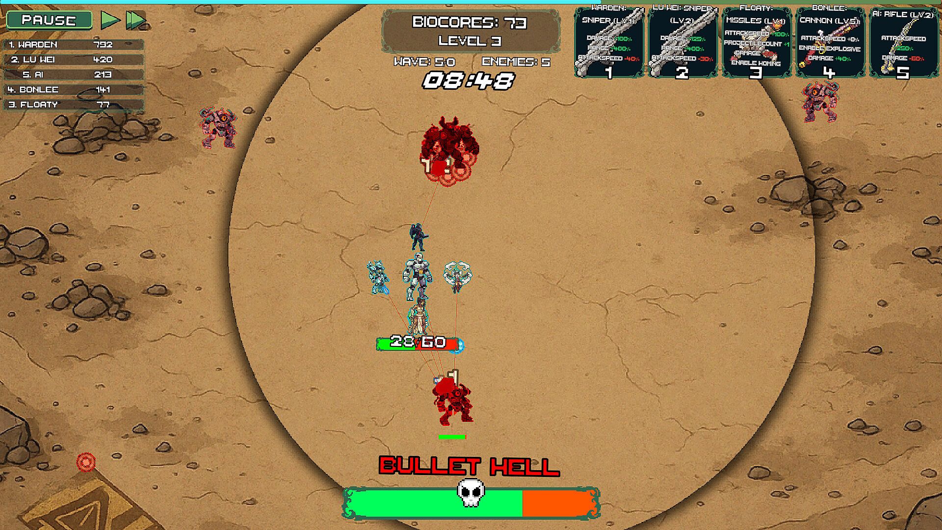 Every boss kill adds 60 seconds, but with each passing wave, enemies grow stronger.