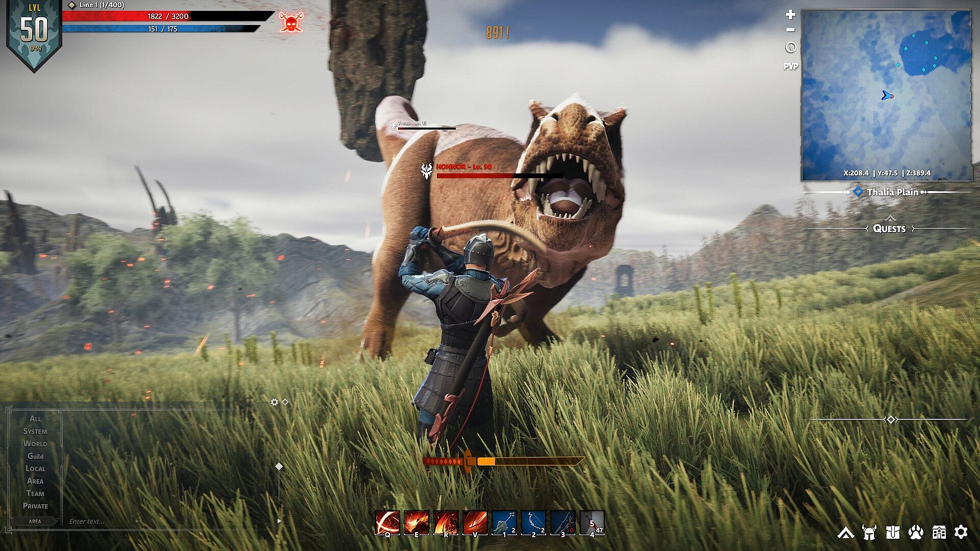 Fighting ancient creatures and beasts will allow you to gain not only sufficient EXP but also all the materials needed to build your equipment. Remember not to challenge the Bosses alone, team up to defeat them and you will become the savior.