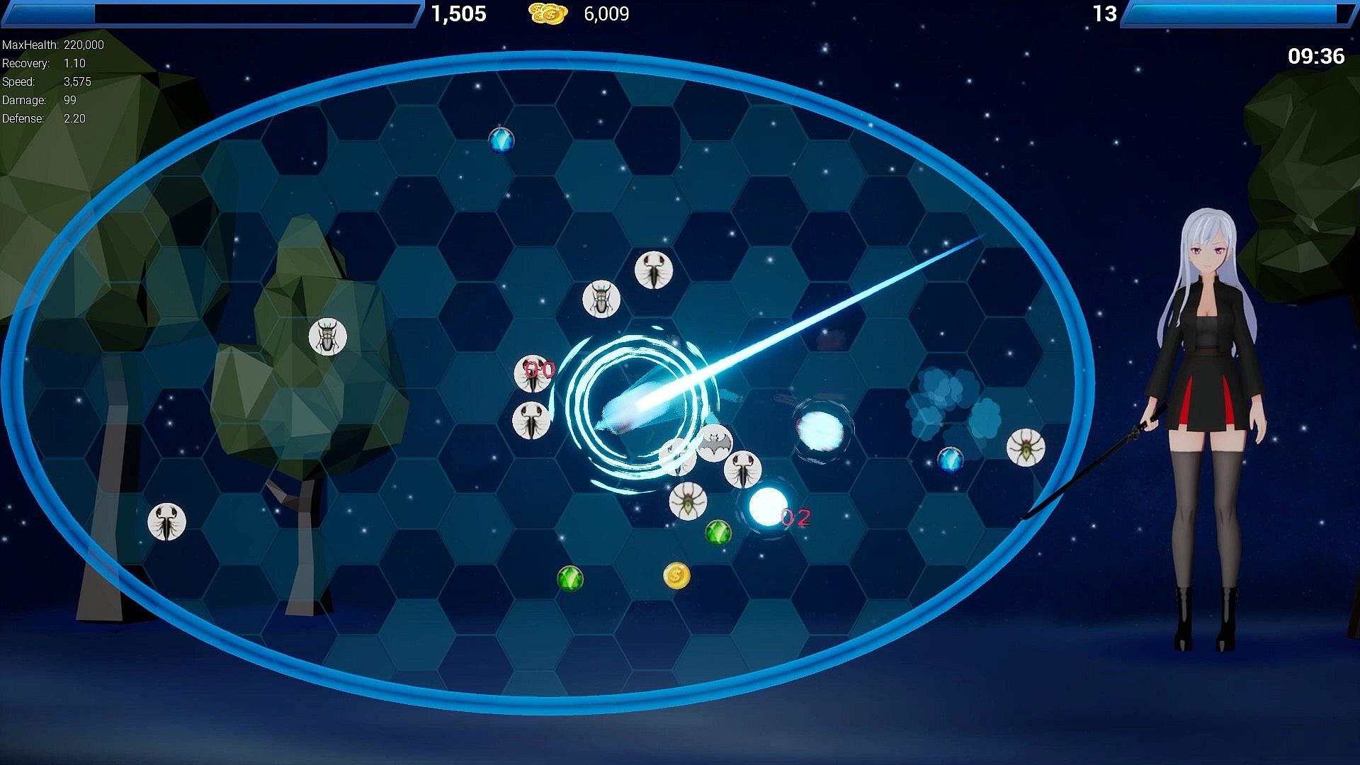 Dash Around Madly is a time survival game with minimalistic gameplay and roguelite elements. In a chessboard-like battlefield, there is nowhere to hide, and all you can do is survive until the last enemy is eliminated. Enemies drop gems and coins randomly when they die. By collecting gems and coins, players can upgrade their equipment and skills.