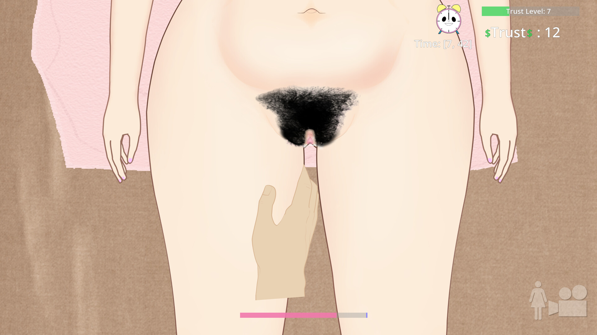 Massaging sore muscles will earn Trust Points, which can be spent on powerful tools and items, or unlock unique sexual actions and cosmetics. Higher states of Arousal and orgasms will provide a LOT of Trust Points.