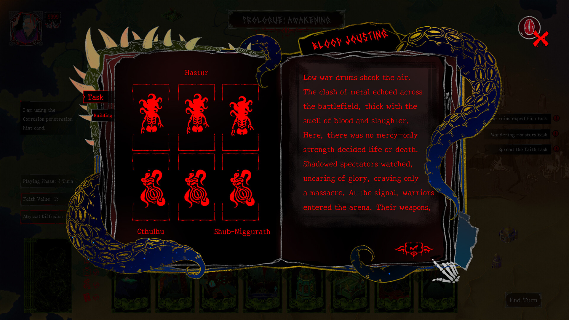 This is a tabletop card war game based on the worldview of Cthulhu Mythos.