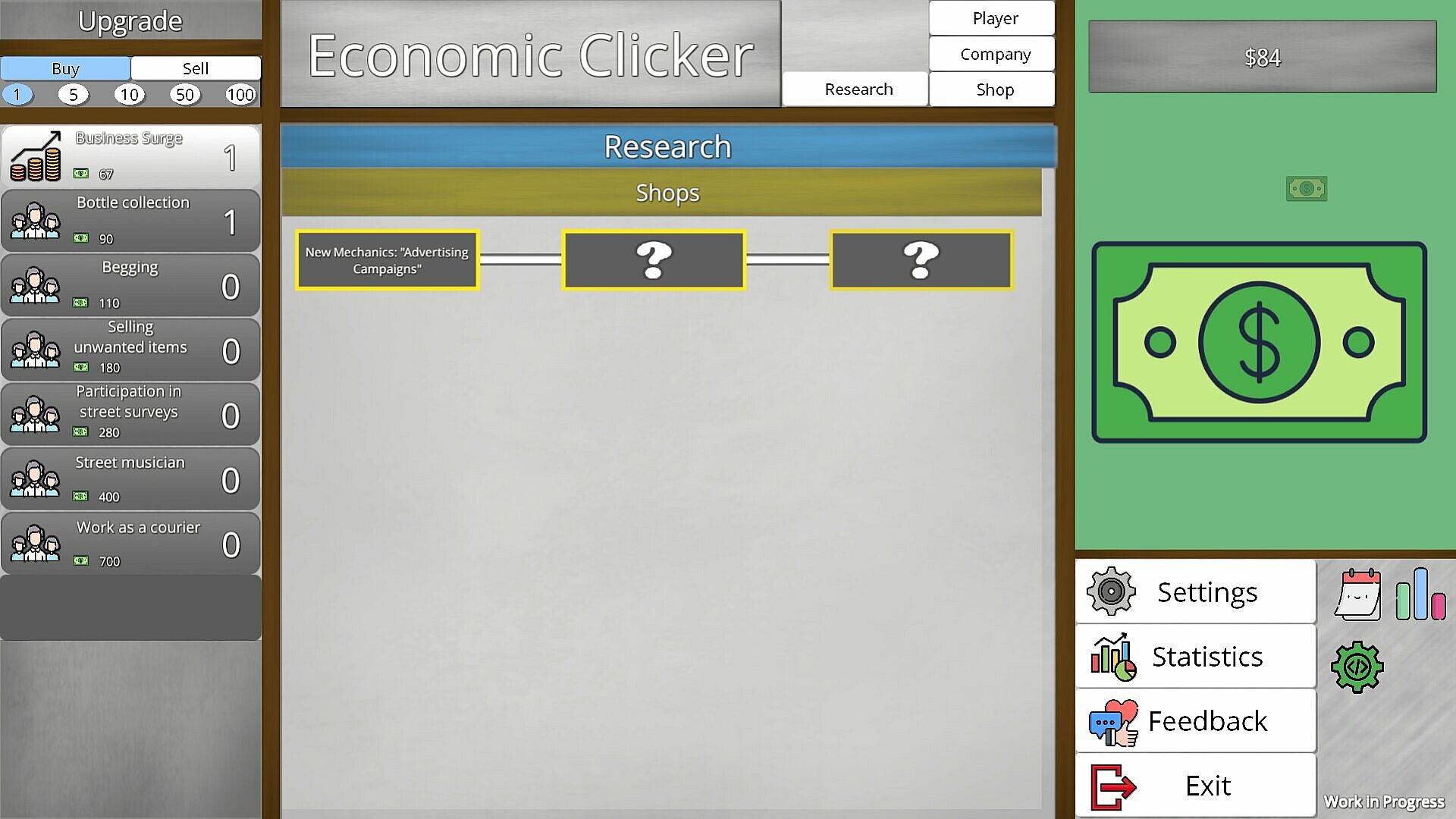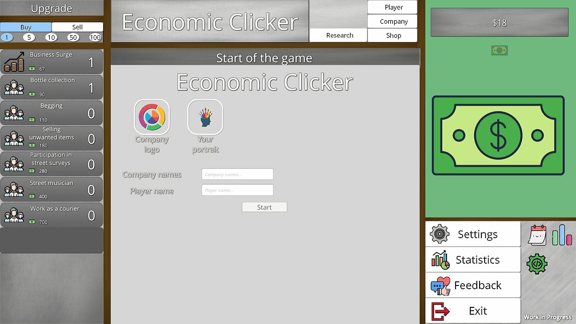 Dive into the world of business where every decision shapes your success! Can you become a tycoon and build your economic empire? The game is currently a "Work in Progress," so expect regular updates with new features and improvements.
