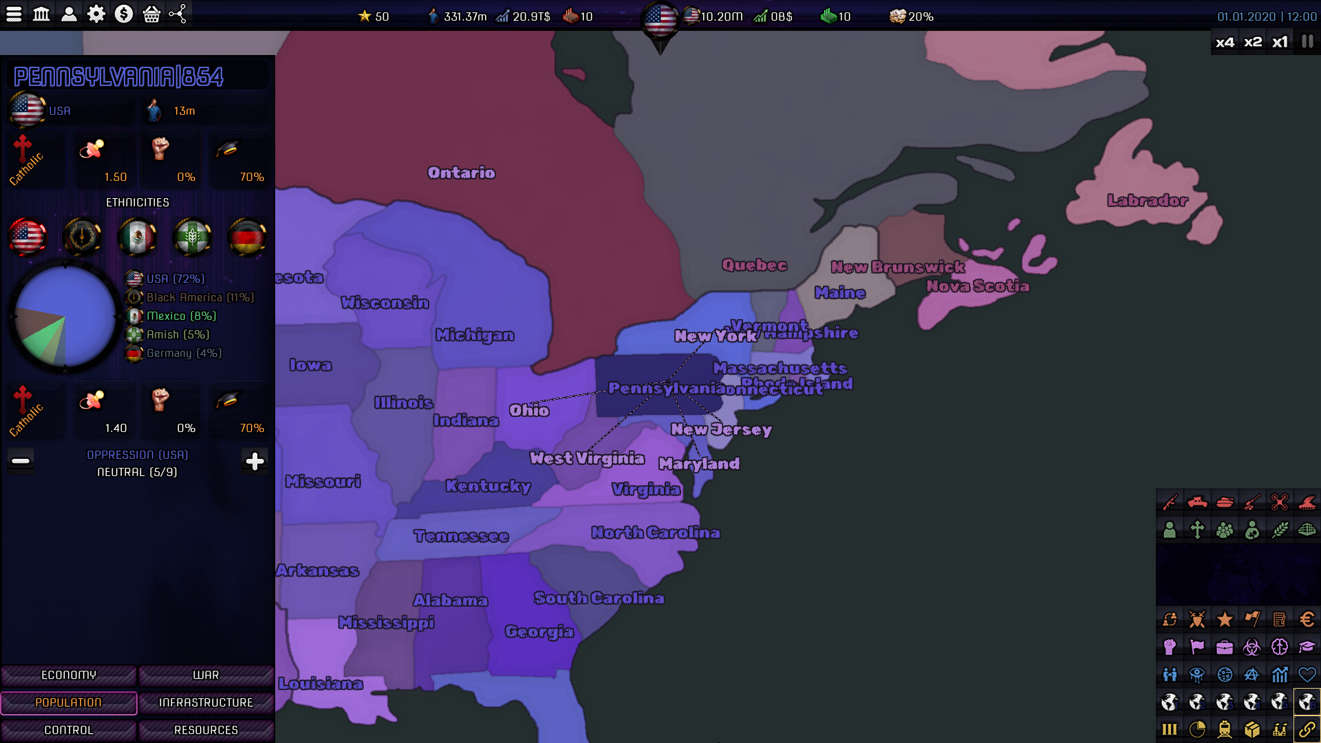Stwórz własny system ekonomiczny. Gra ma dobrze rozwinięty system handlu, produkcji, migracji, dyplomacji, ceł, podatków i praw dla każdego gustu.