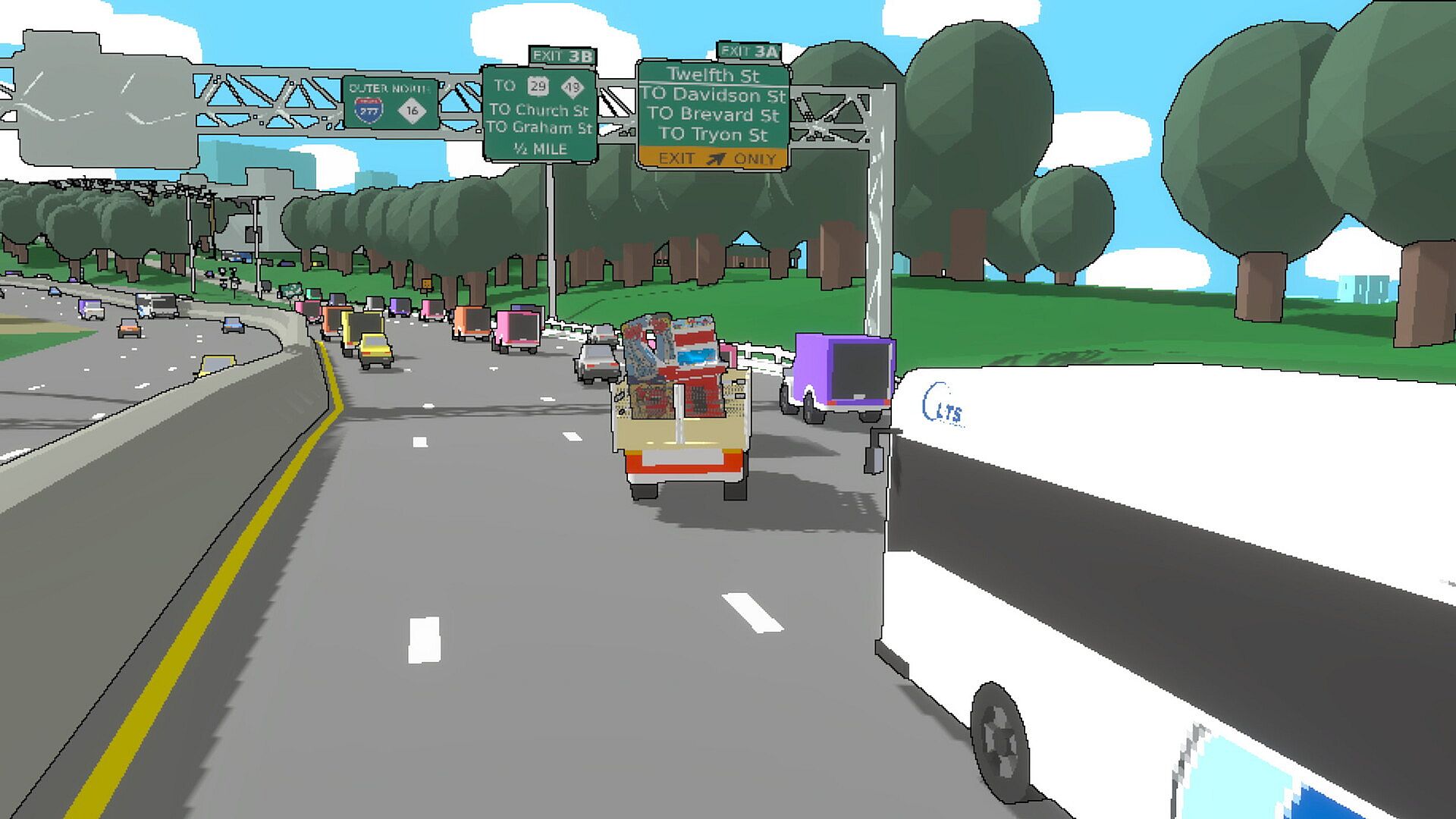 Exit 3A: The Game is an arcade-style driving game where you drive through infamous infrastructure in Charlotte without losing your cargo.