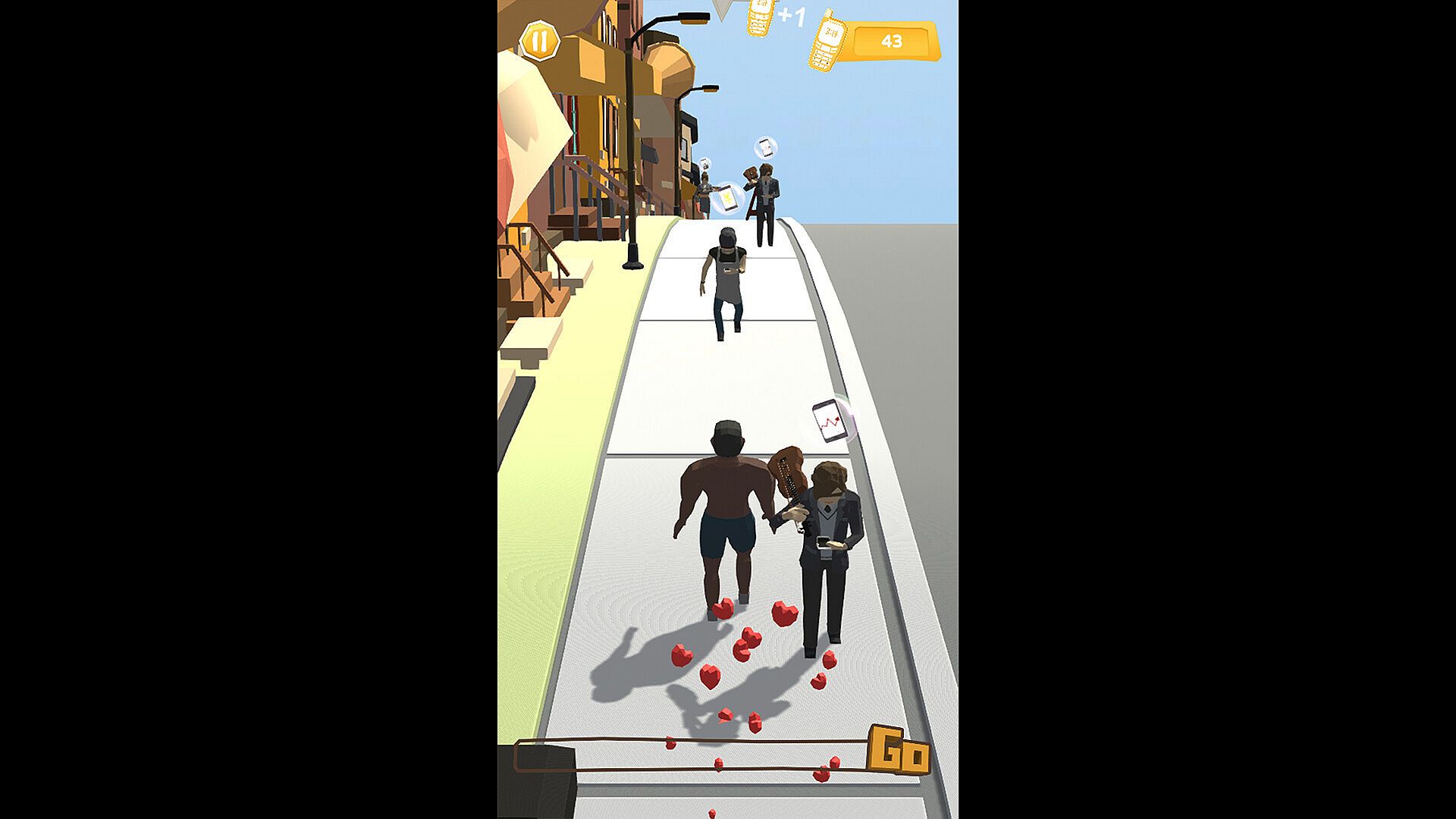 Now, choose your hero—become the "Reckless Dude"! Use the "A" and "D" keys to control your character, crash into pedestrians glued to their phones, collect the phones they drop, and press "F" to dash. Embark on an exhilarating street run and teach these phone addicts a lesson they won’t forget!