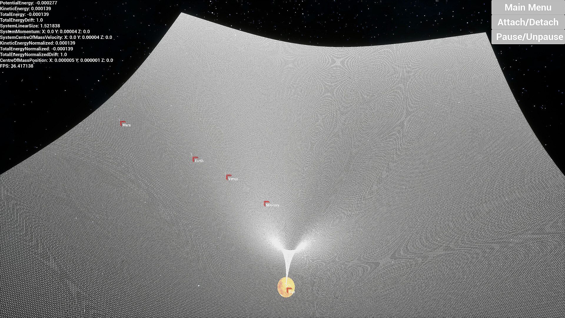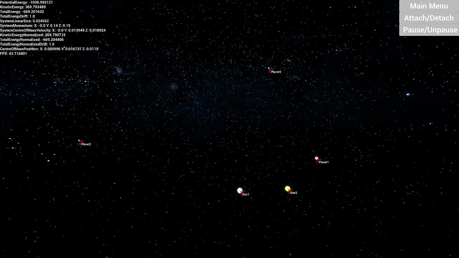 Gravity simulation environment. Accurate enough for demonstration and educational purposes.