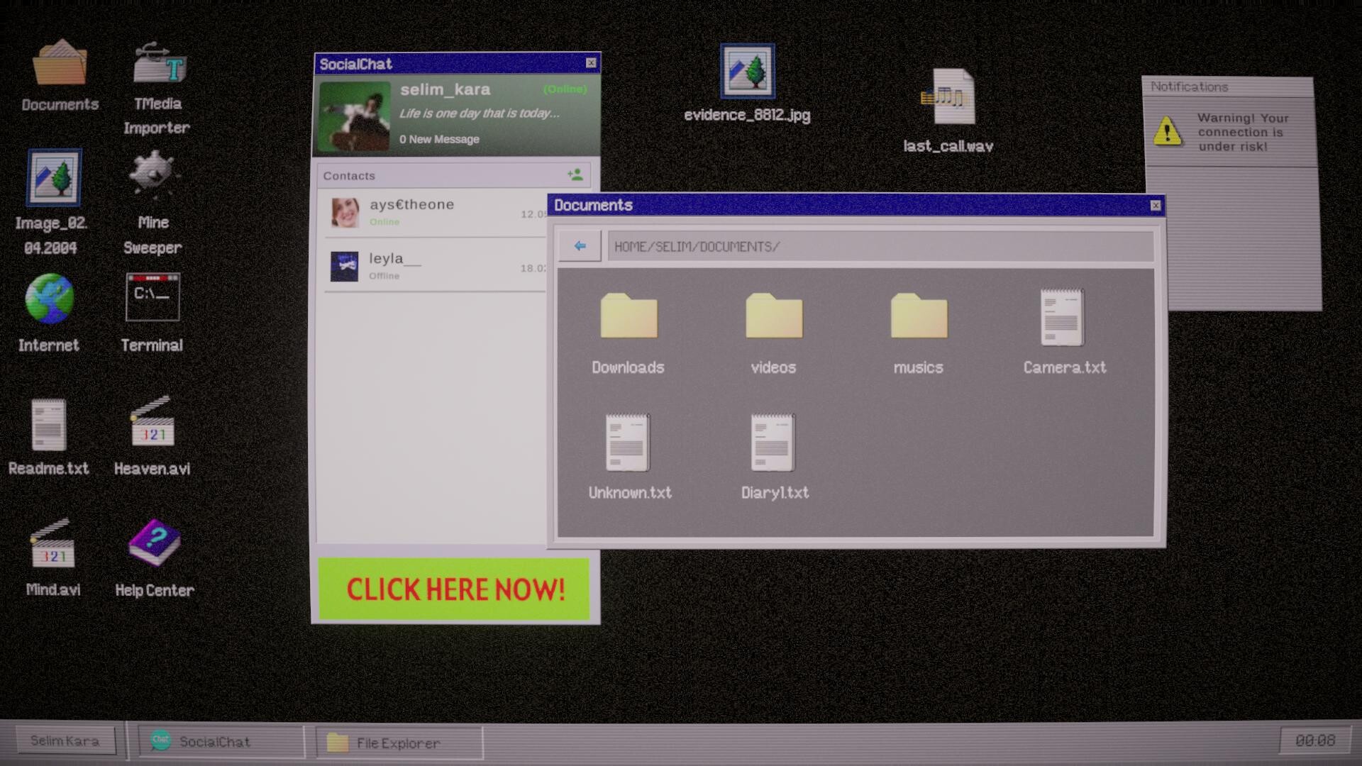 From chunky icons to broken files and eerie startup sounds — the game recreates a fictional 2005 where the internet feels analog, and every click echoes through time.