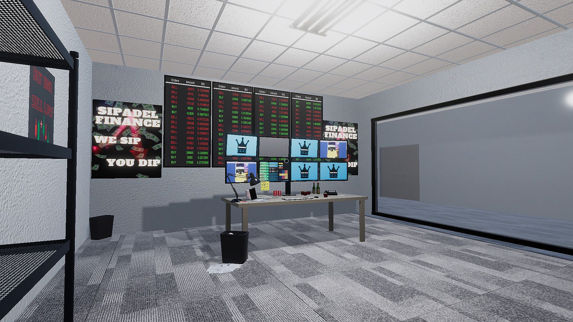 Trapped within the offices of a large hedge fund called Sipadel Finance. It's your job to take a sip and make the apes dip.