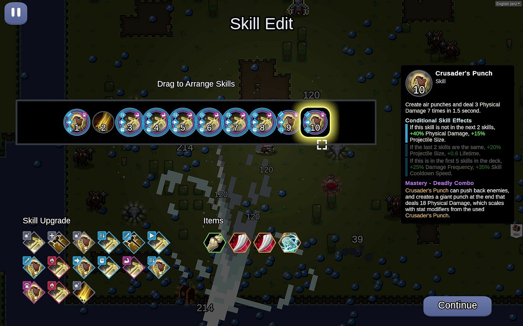 Skills are like using cards, they can create incredible combos. Strategize how to arrange skills for maximum damage.