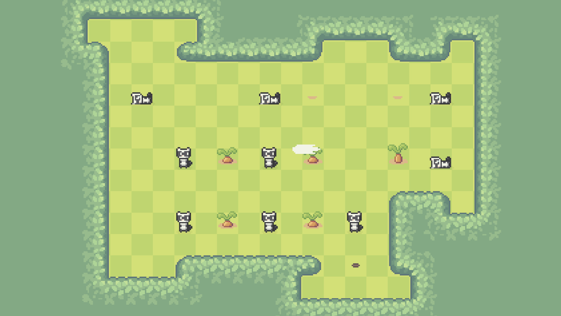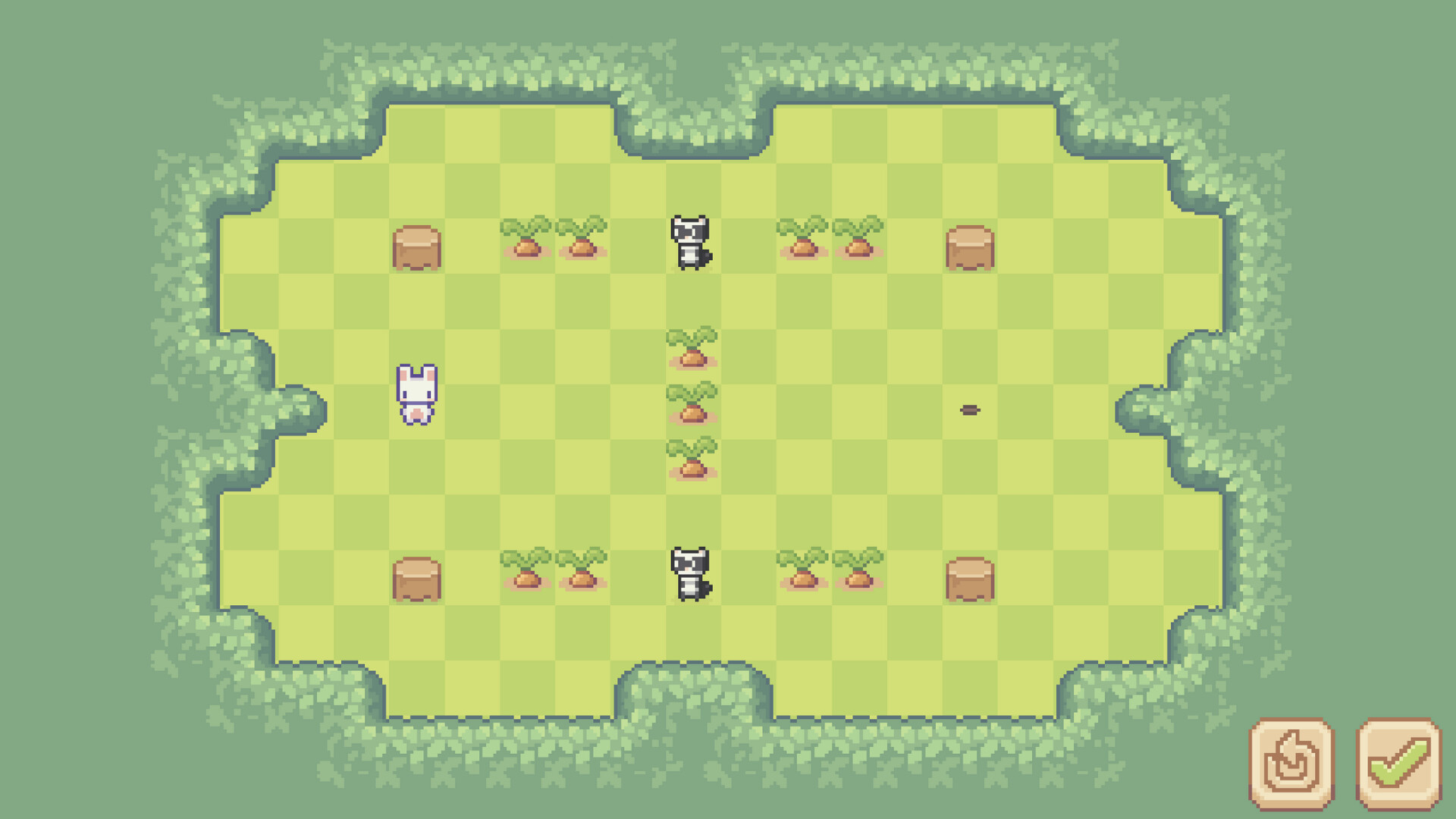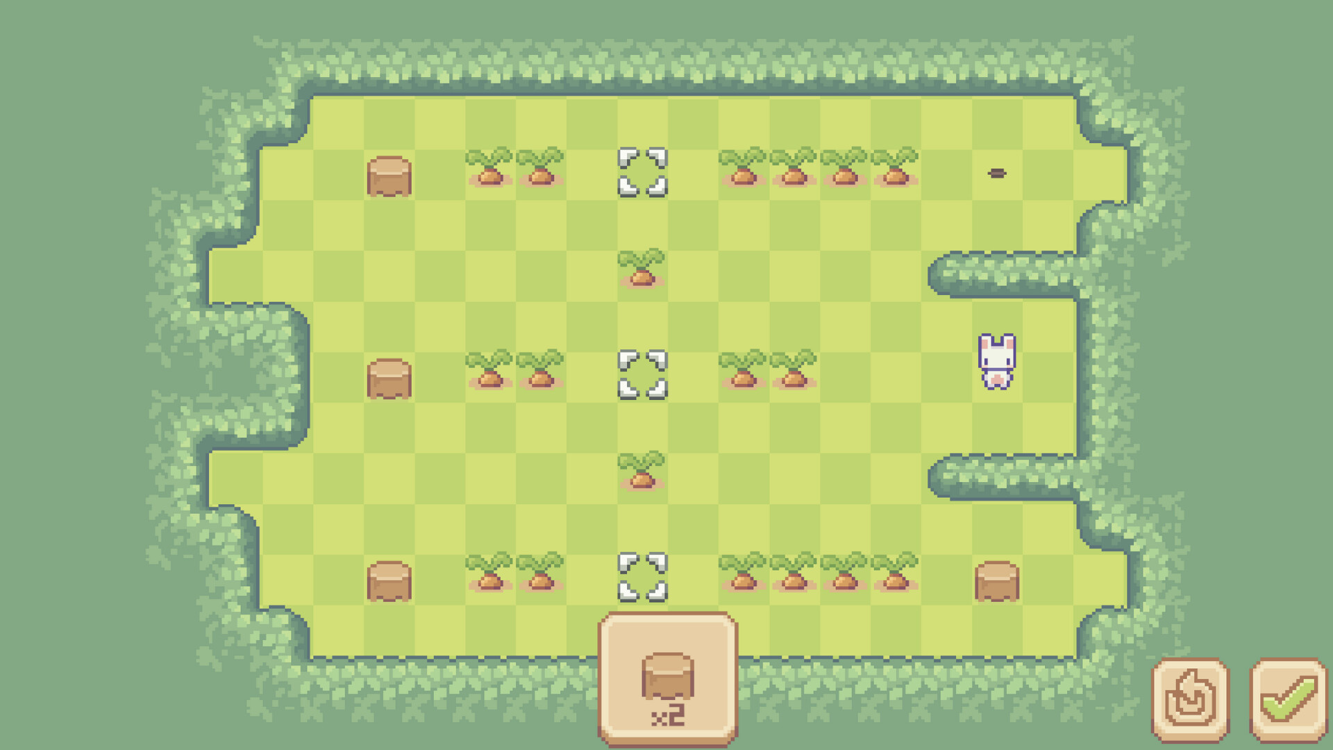 To progress, plan routes that let you gather every carrot and unlock the exit.