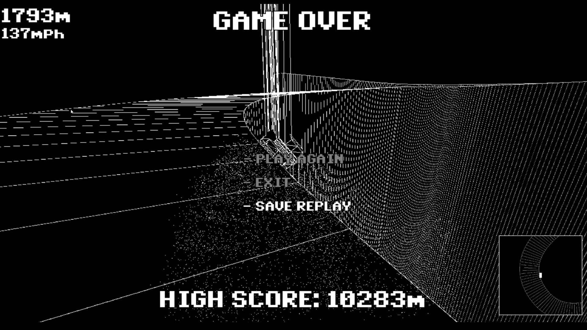 An arcade style racing game where you drive on an infinite track, within a dark virtual void, with every turn requiring you to drift!