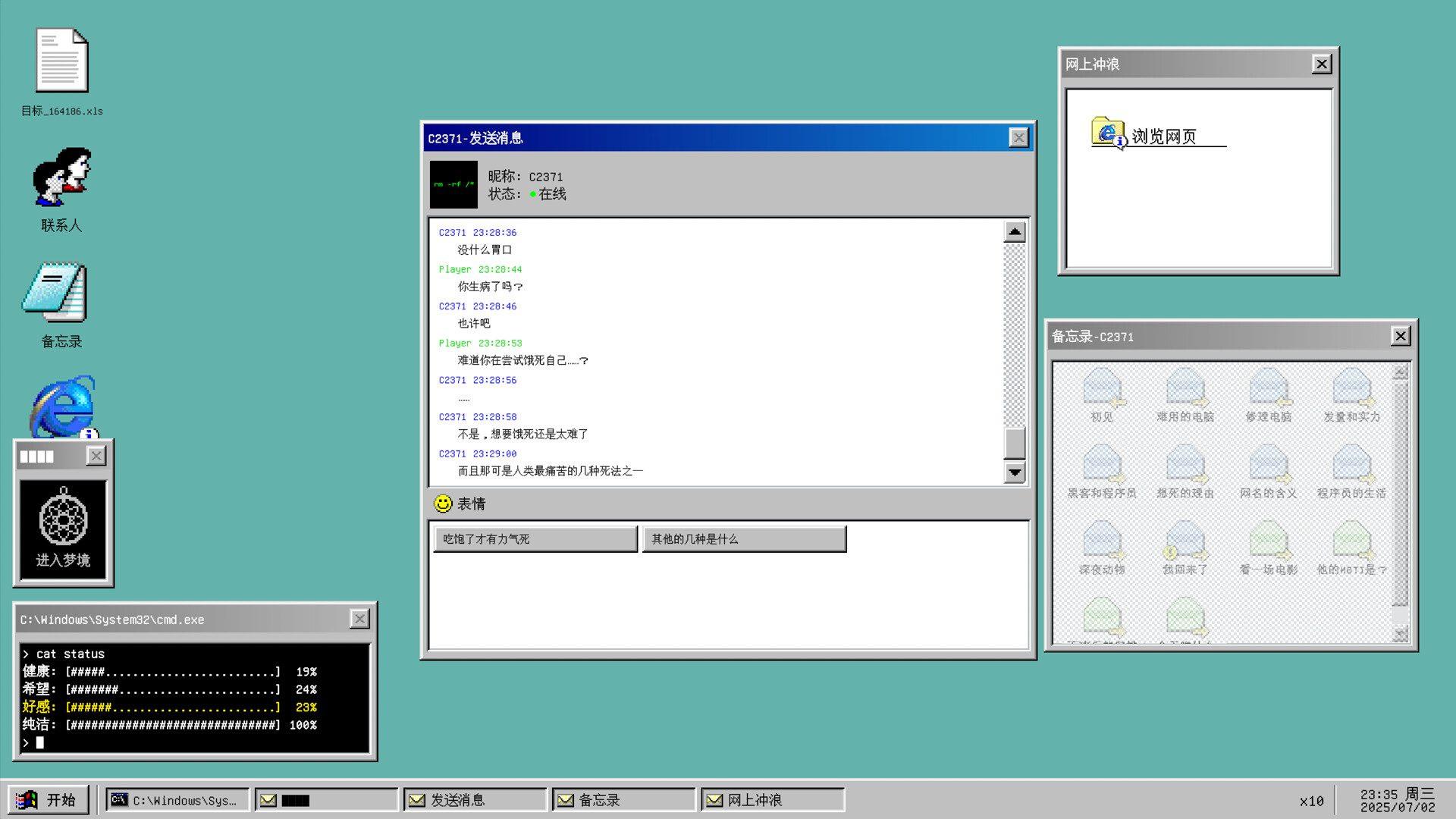 3 情绪变量系统:希望值、健康值、好感值将共同决定角色行为与结局。
