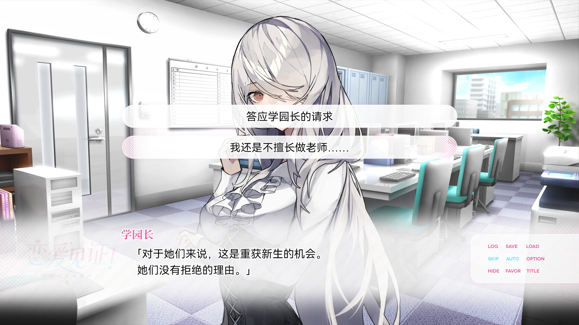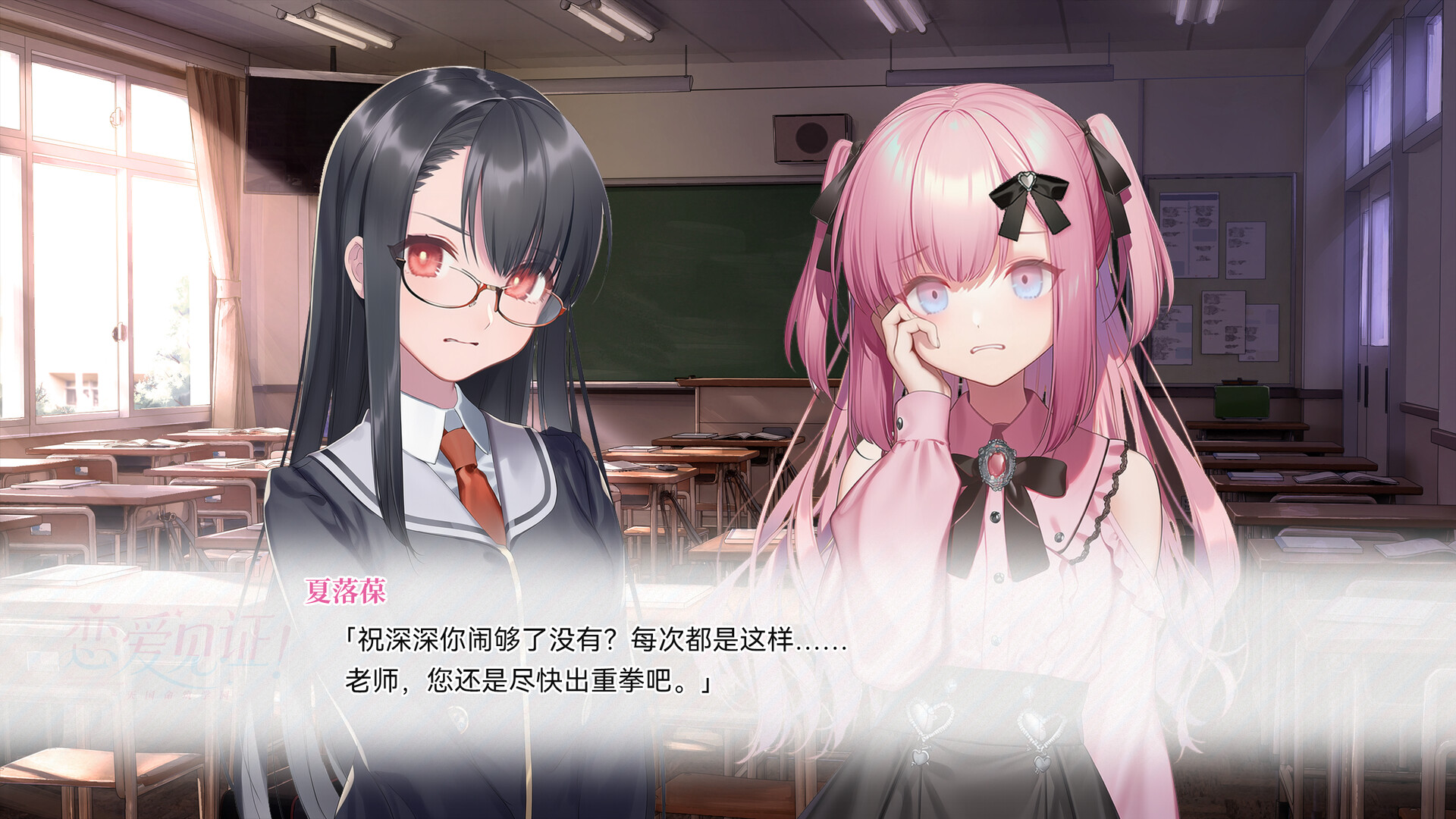 《恋爱见证!》是一款美少女恋爱视觉小说(Galgame)。您将作为入职「天国命筑学园」的新任教师,体验一场为期一个月的青春恋爱喜剧!