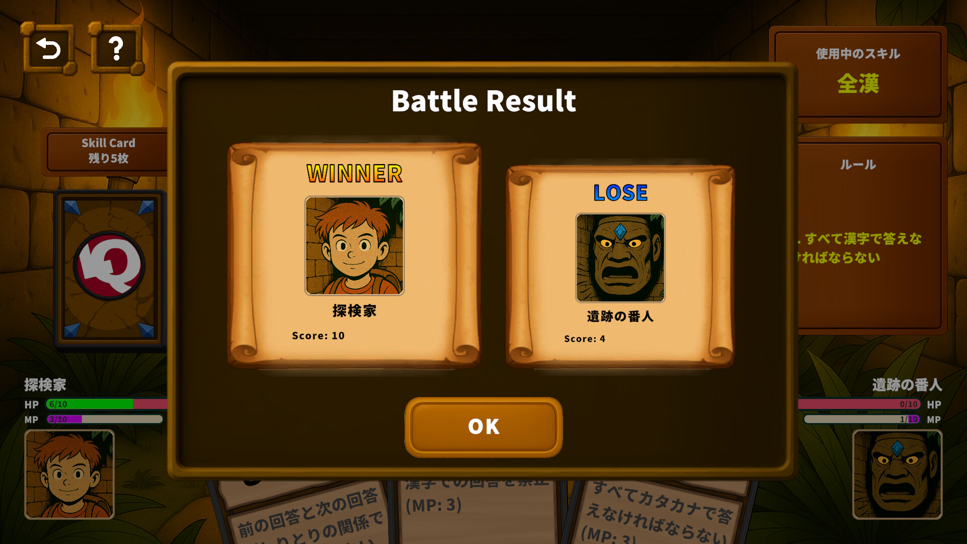 Use your skill cards and knowledge to outsmart an AI opponent.