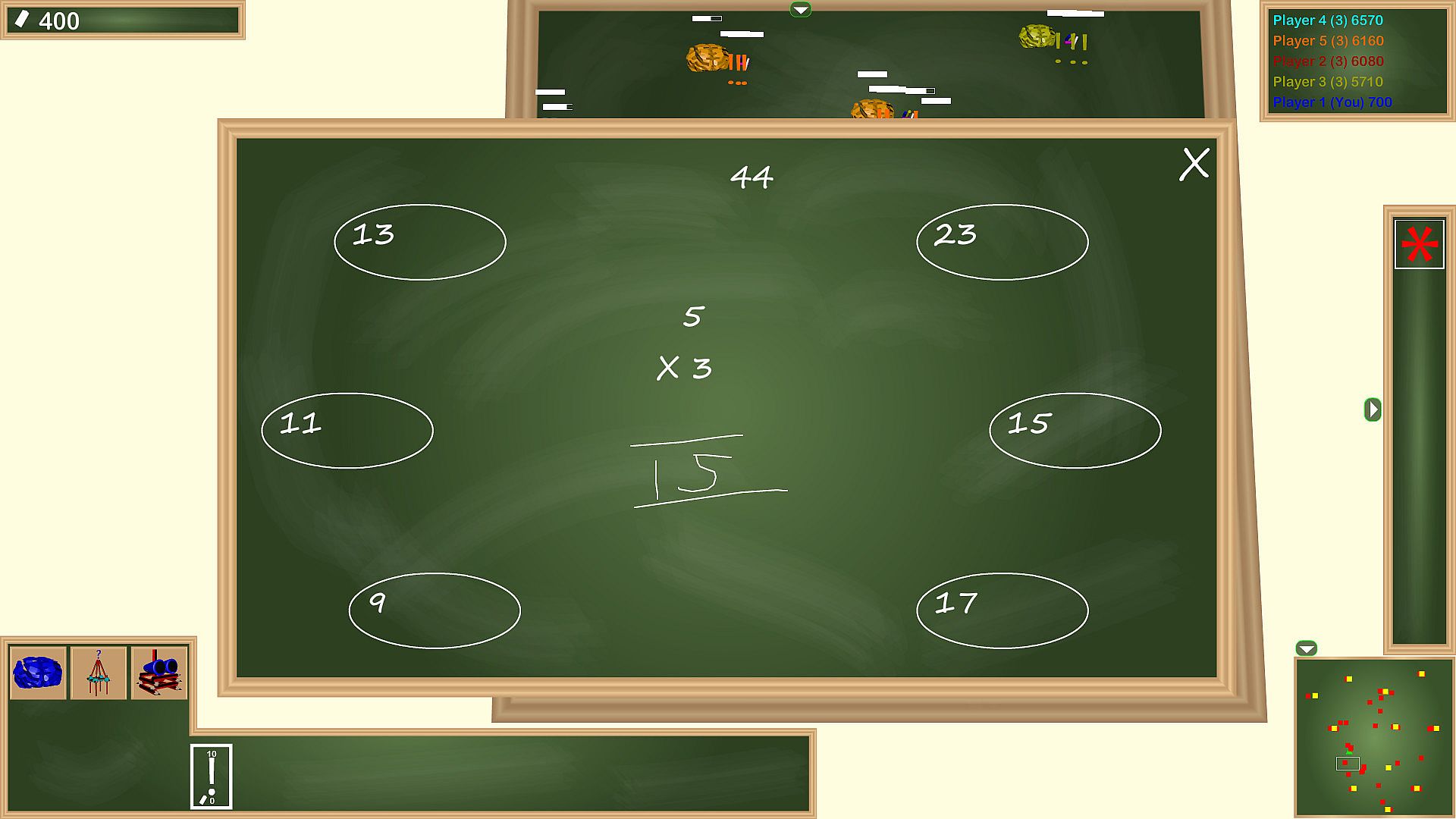 Math RTS is a new RTS strategy game that focuses on solving mathematical problems in a new and exciting way. You have to defend the chalkboard by collecting chalk and making problems for your opponents. The aim was to make math interesting and to bring fun to the classroom in a whole new way.