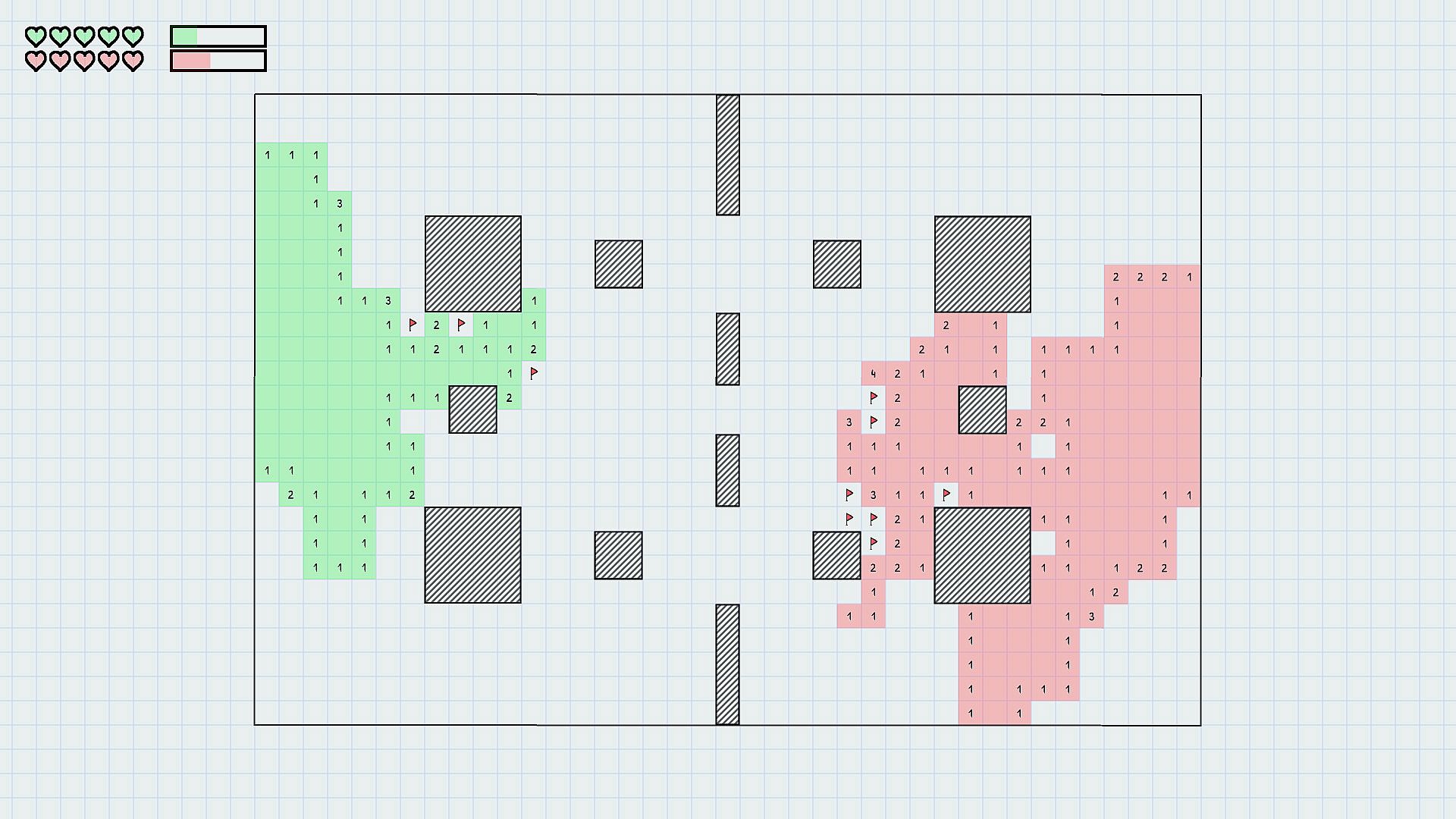 This is a real-time tactical minesweeper. Compete against computer on various maps. The one who opens majority of cells faster and does not explode - wins.