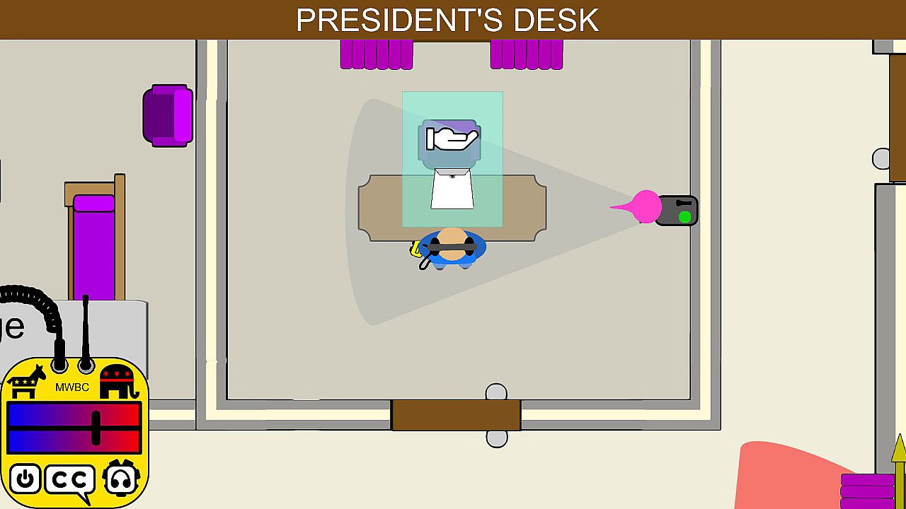• Use stealth mechanics to time your movements past cameras and other types of security in order to plant trash you find across the White House and influence the course of the election.