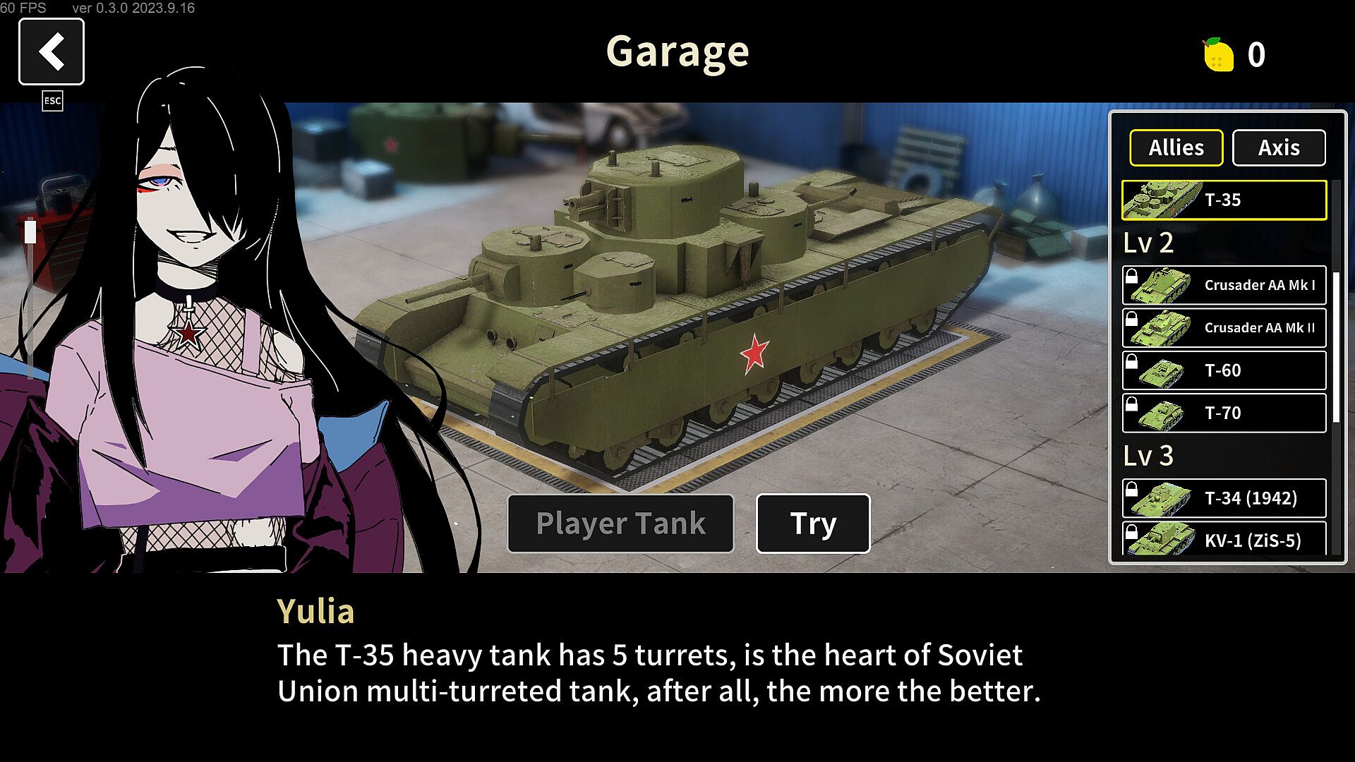 There are over 60 WWII tanks to choose from in the game. You can select one as your combat vehicle.