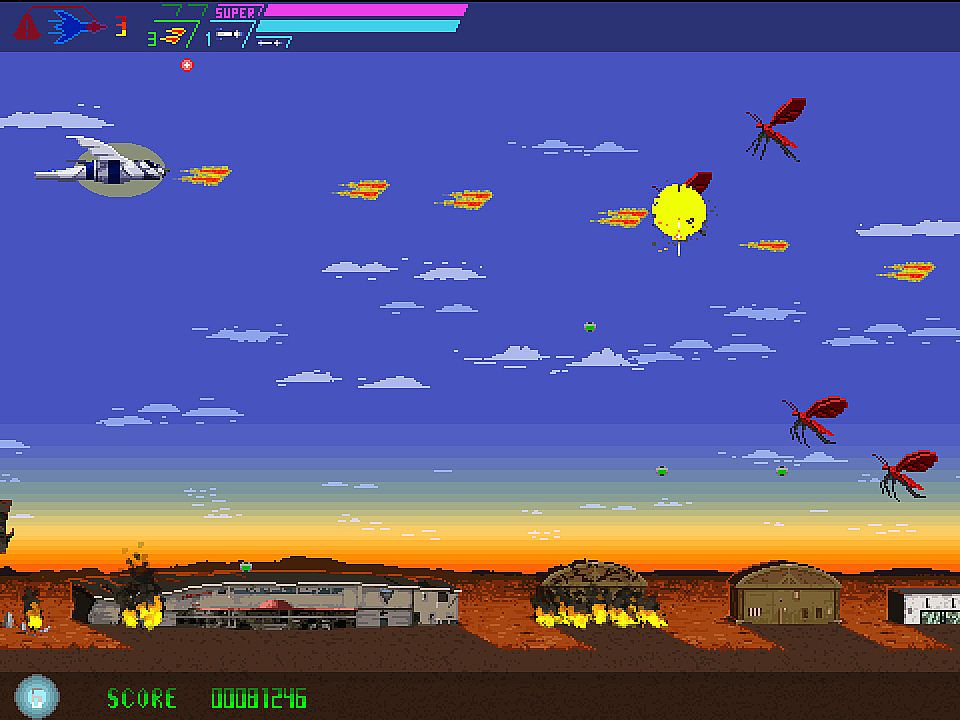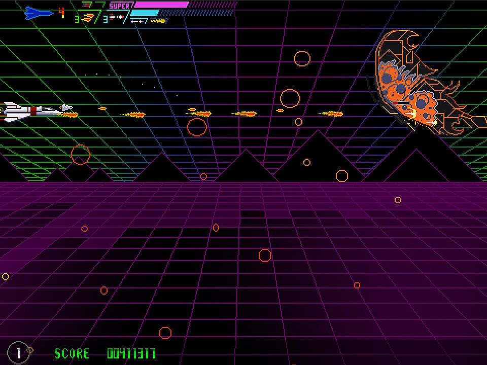 Neon Aileron is a retro-style shooter where enemies spawn to the beat of the music. Neon Aileron was created to evoke memories of playing older shooters that pre-date the bullet-hell genre. We call this bullet-lite, because the focus is on shooting enemies instead of dodging complex bullet patterns. Neon Aileron is great for players who are new to the shoot 'em up genre or those who haven't a played a horizontal shooter in a while. The forgiving damage system and multiple difficulty levels allow the game to scale to the player's skill level. Switch to the Hard difficulty when you are ready for more of a challenge.