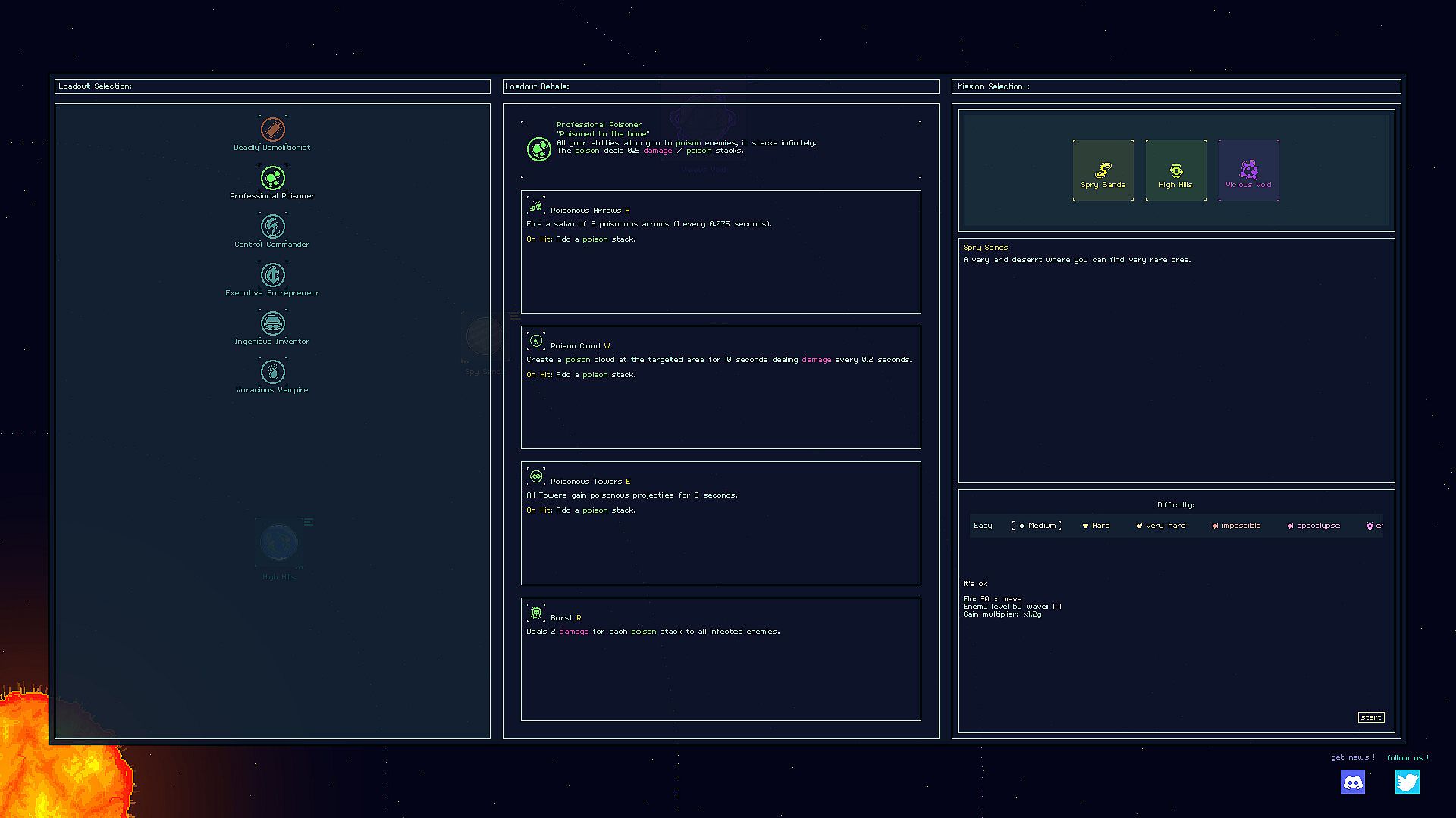 Pick a loadout with unique abilities, Upgrades for your towers, and create unique synergies.
