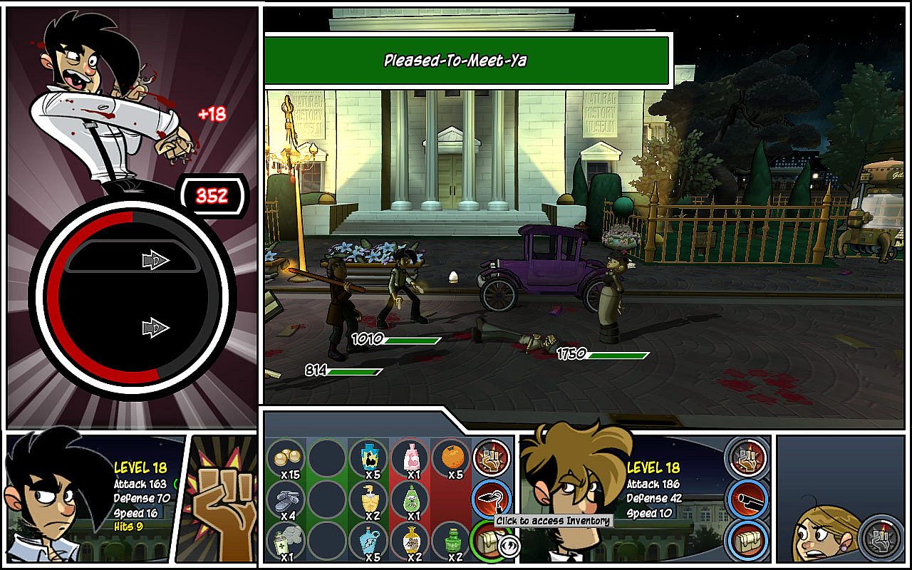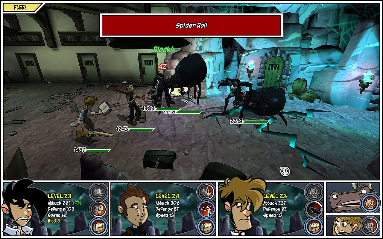 • Dynamic turn-based combat system, over-the-top animations, and team-up moves during enemy battles