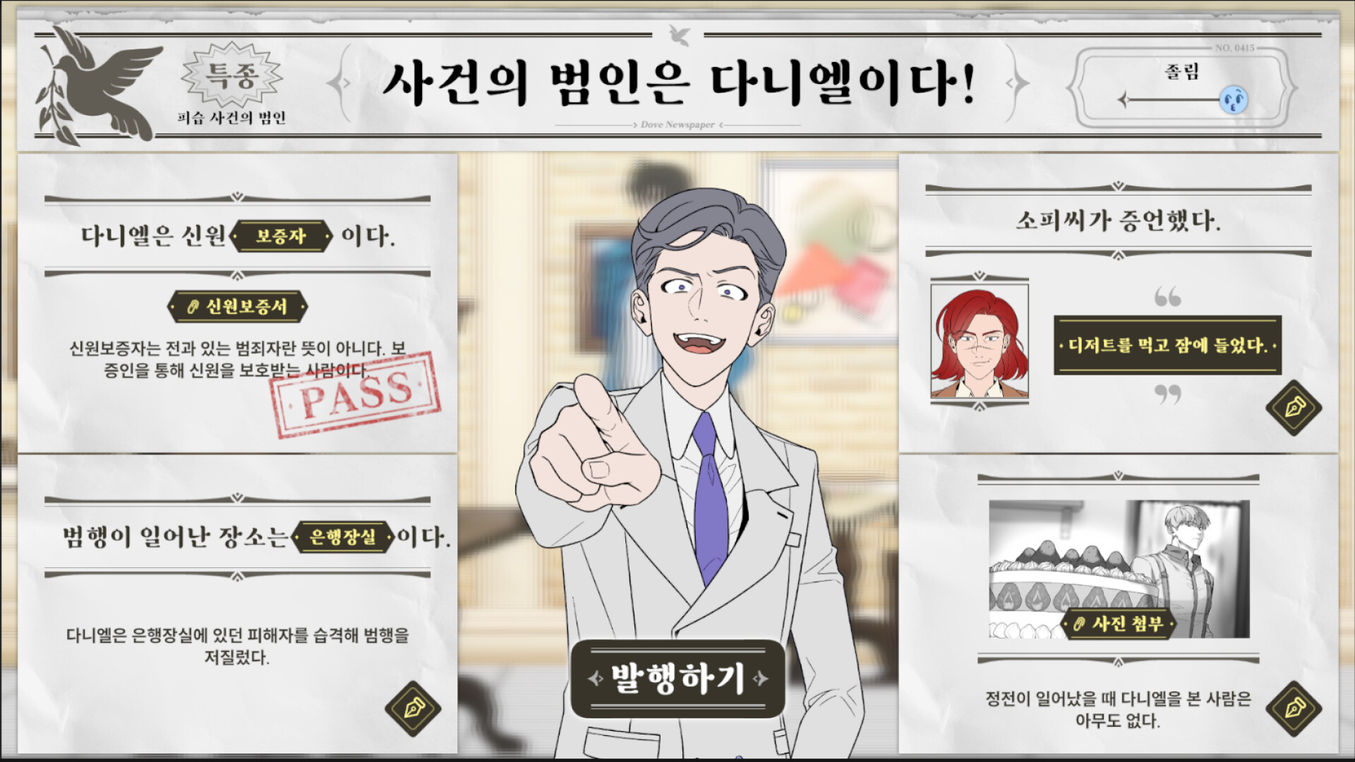 Project Judgement is a detective adventure game where the story progresses as you follow the quest.