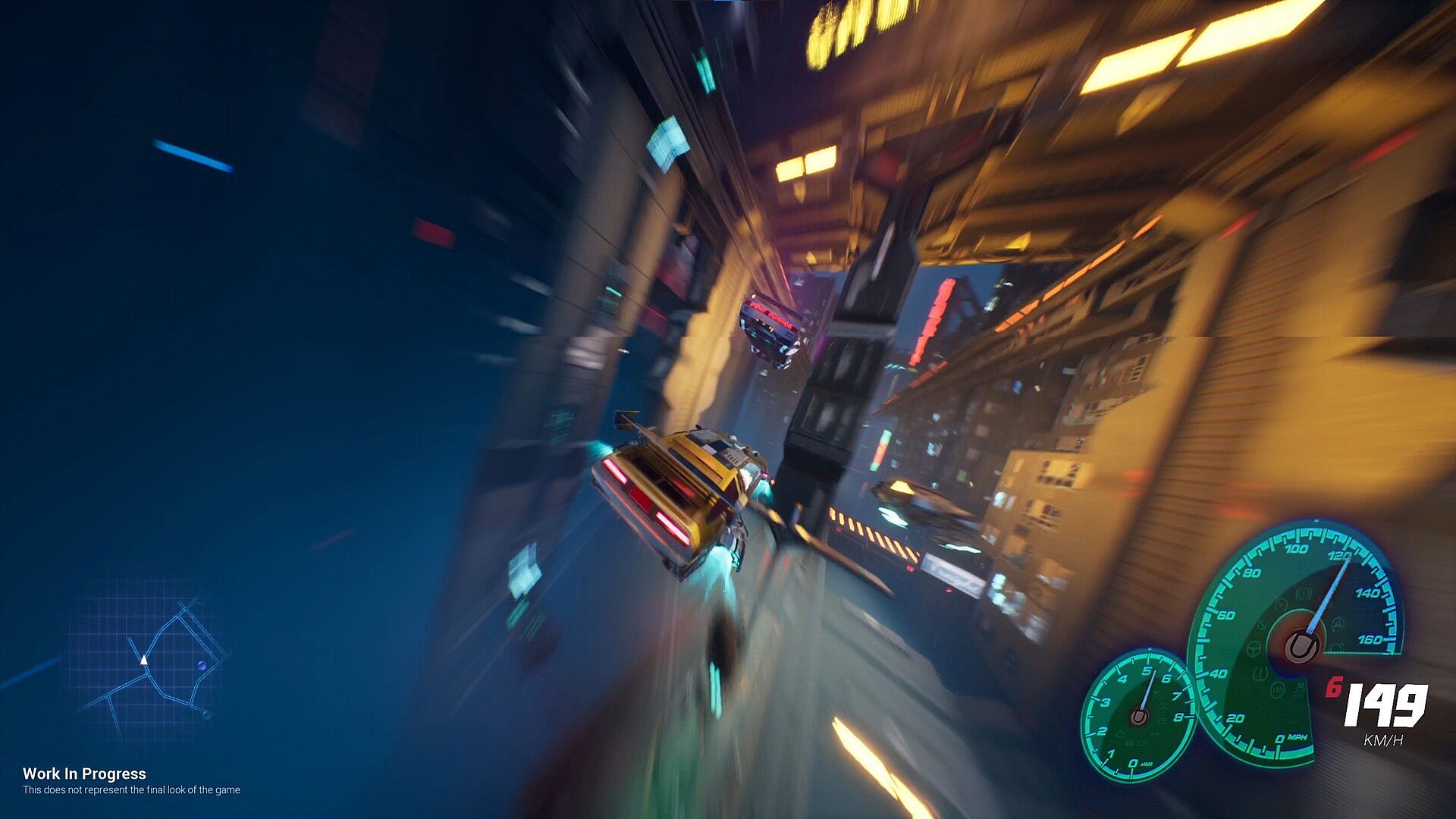 • Flying-car racing in a neon open world