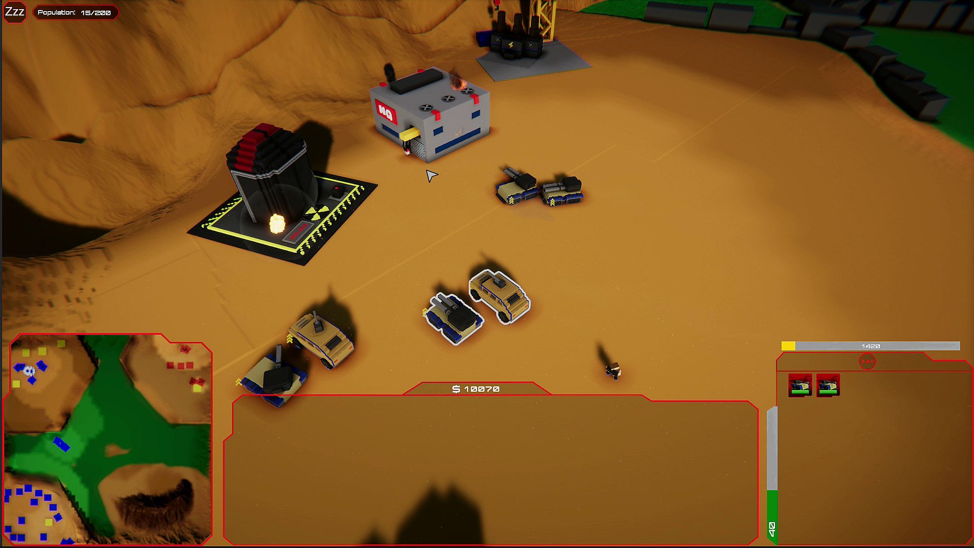 Rush & Command is a classic voxel style multiplayer real time strategy game, that will intrigue both highly tactical as well as make-everything-up-as-you-go RTS players. The game is set in an alternate world where units and armies dating back from the 1960-1980 are enriched with high-tech current technologies and knowledge.