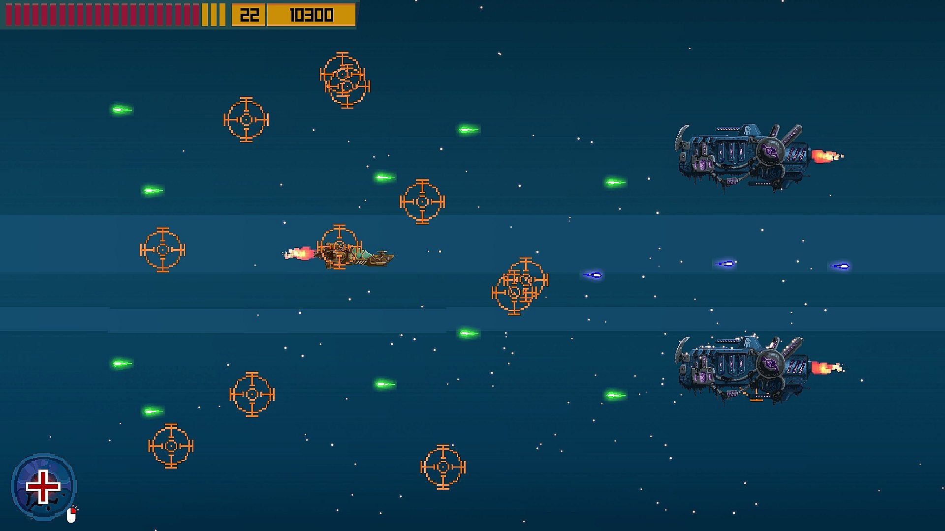 • Weapon booster - for 10 seconds activates an additional weapon module of the ship with more powerful guns