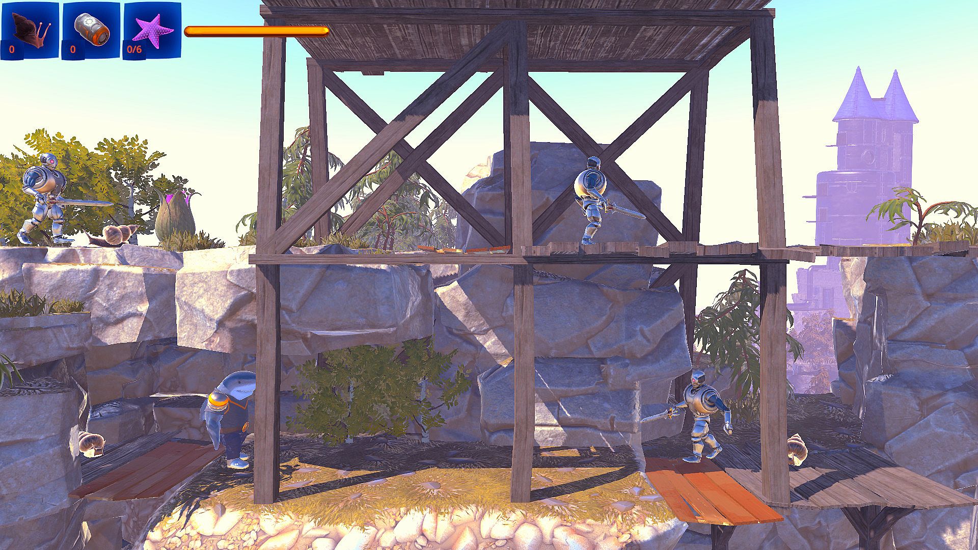 Explore the castle, use your limited resources to neutralize the pollution, and avoid the watchful eyes of Damian and his robot minions. Help your friends with their gardening and sculpture projects to earn valuable items, and finally rescue Elmsworth, your missing goldfish companion.