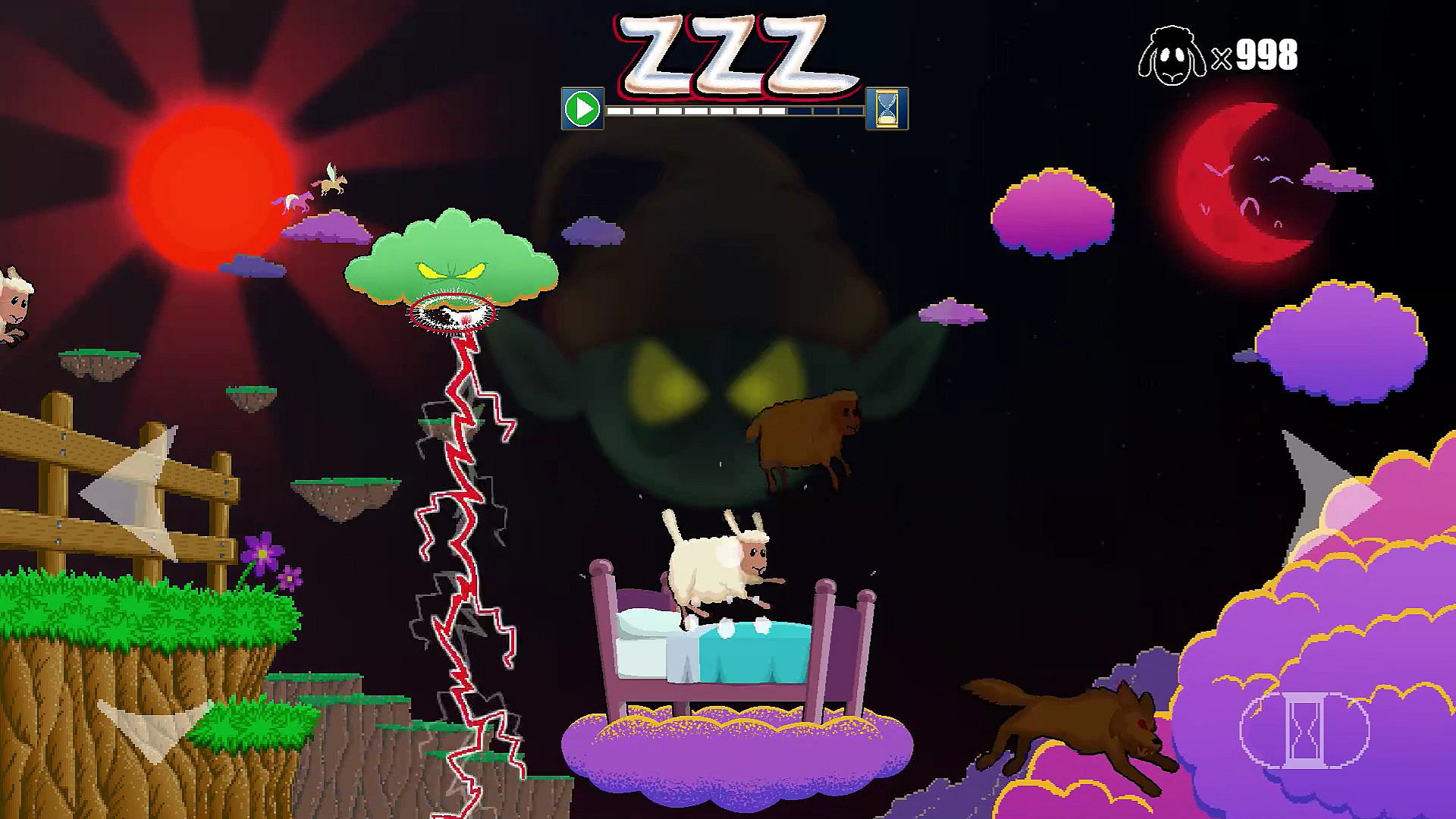 En Shleepy Time Catching Z's, el núcleo del juego consiste en mover una cama para atrapar ovejas entrantes y lanzarlas de forma segura al otro lado de la pantalla. Enfrentas oleadas de grupos de ovejas que exigen un timing preciso para rebotarlas más allá de obstáculos y enemigos. El Sandman lanza siete tipos de minions y adopta diez formas distintas para sabotearte, lo que añade capas de desafío a medida que progresas.